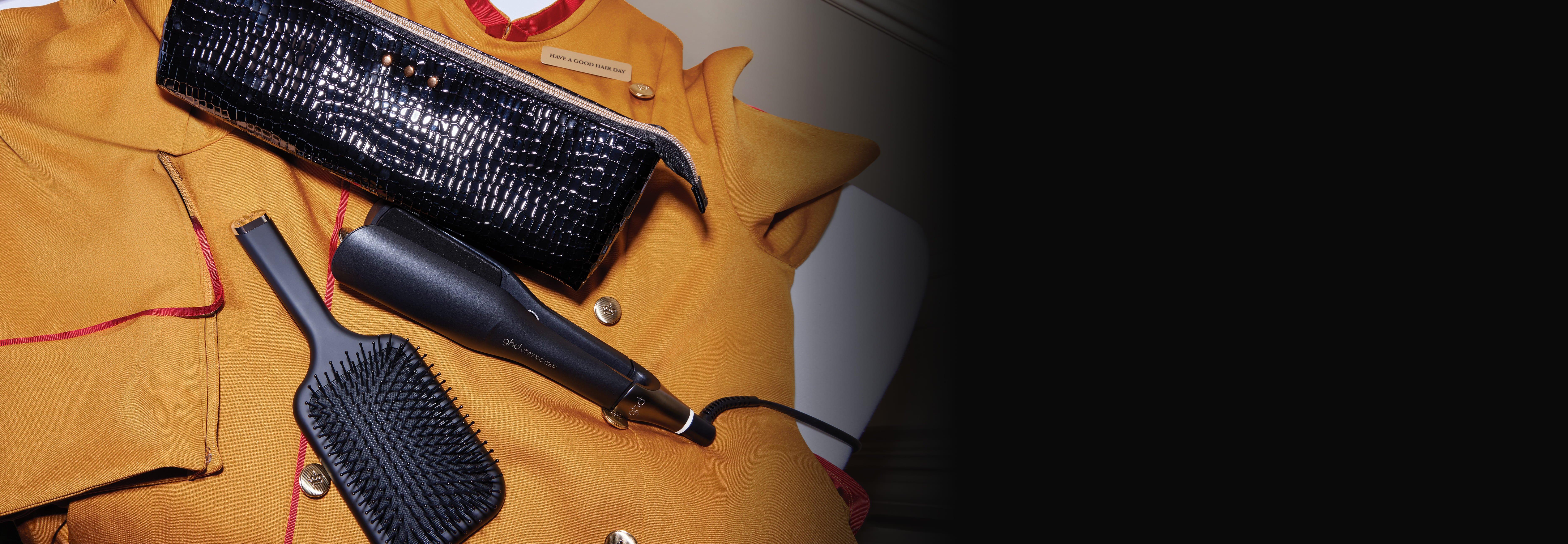 Our professional wide plate hair straightener, the ghd chronos max, is gifted with a luxury heat-resistant bag* and a ghd all-rounder paddle brush for flawless festive styling.