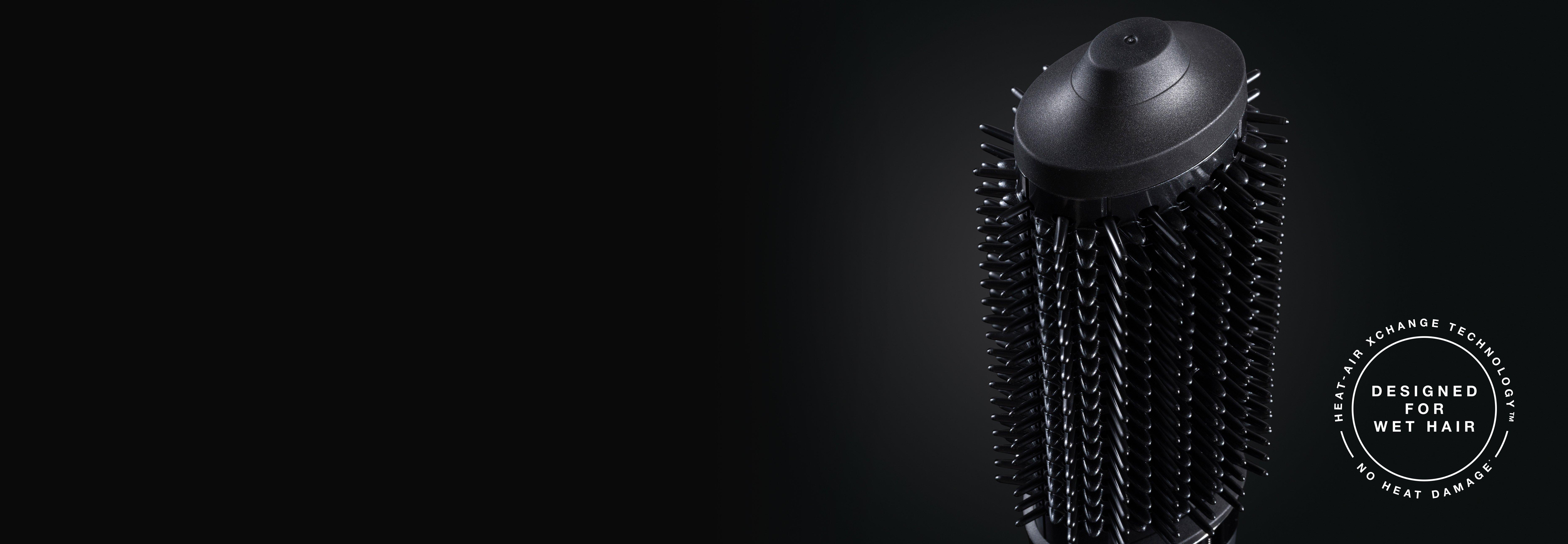 Powered by Heat-Air Xchange Technology™, the compact yet powerful motor drives airflow through an energy-efficient heater and a uniquely aerodynamic system. This transforms airflow into thermal energy, heating the elliptical-shaped barrel plate surface and snag-free bristles to allow for simultaneous drying and styling. No heat damage¹, no compromise - just flawless results in one effortless motion.
