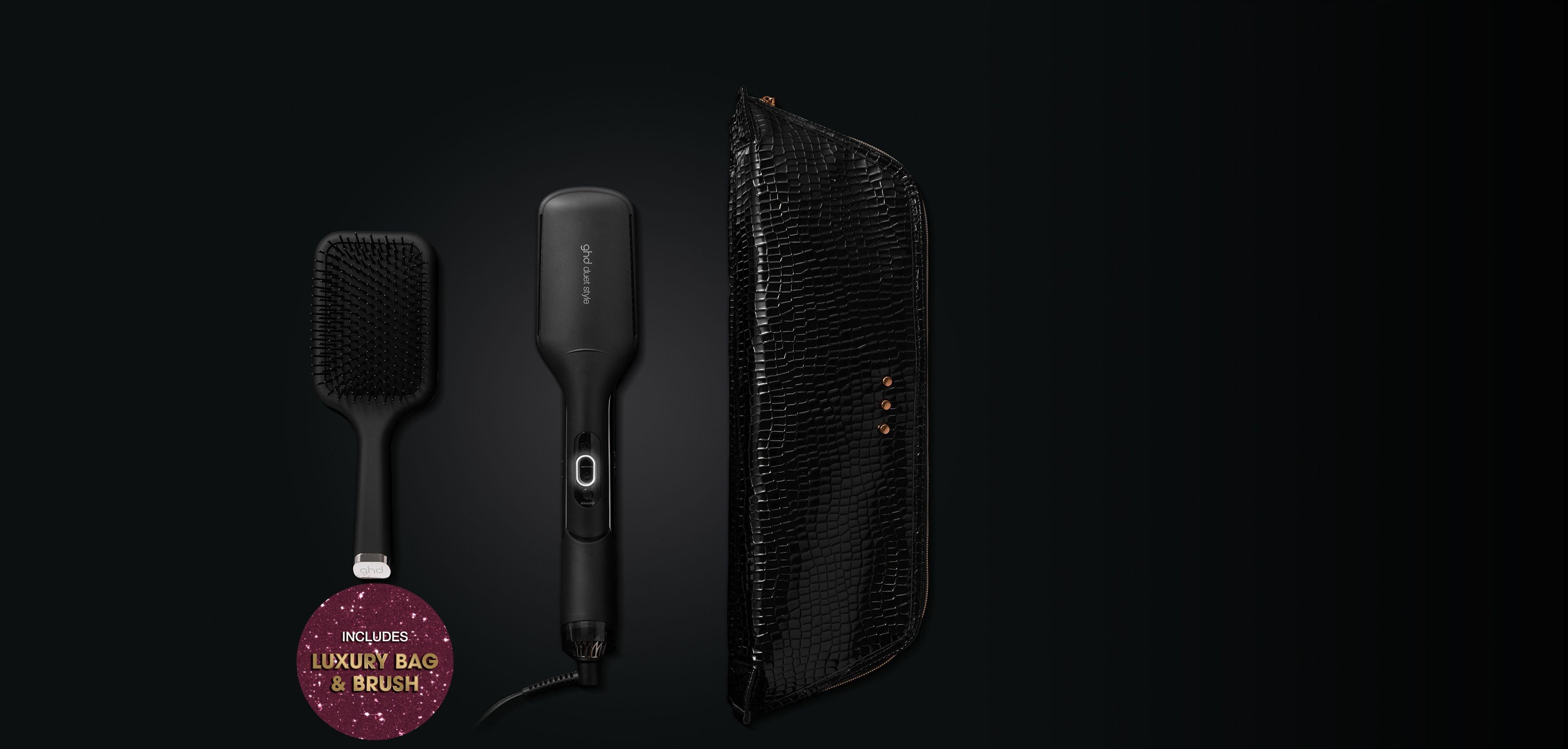 Introducing our wet to dry hot air styler gifted with a luxury heat-resistant bag², and the all-rounder paddle brush for flawless festive styling.