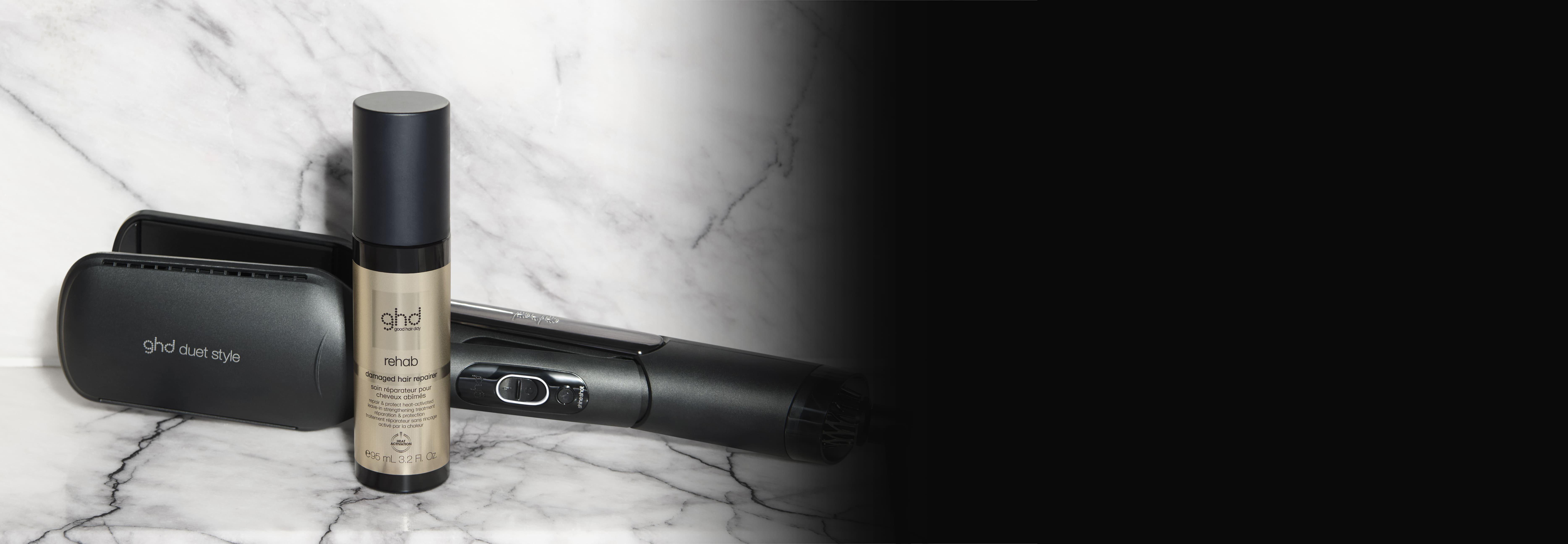 ¹Consumer testing, Sep’23. 78% of 100 women agreed ghd rehab makes hair feel stronger and 84% agree it makes hair softer, vs before using rehab and heat styling.