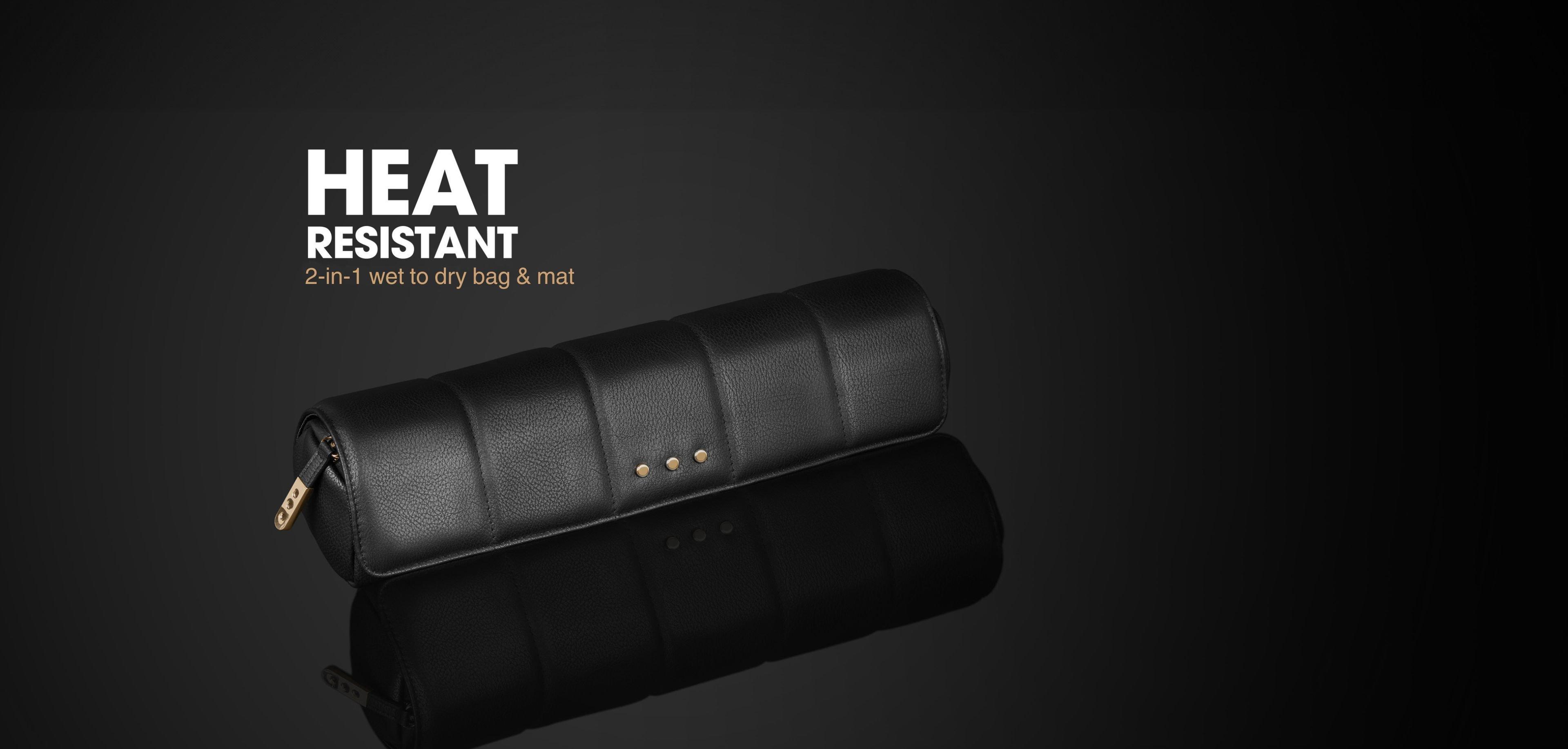 Zippered bag rolls out into a heat-resistant mat for peace of mind while styling.