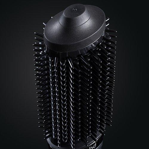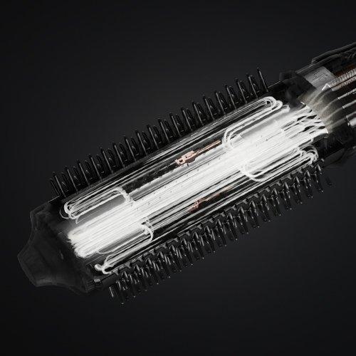 At the heart of this revolutionary tool is Heat-Air Xchange Technology™, which combines a compact, powerful motor with an energy-efficient air heater and advanced aerodynamic design. It drives air through the bespoke elliptical-shaped barrel and snag-free bristles to dry and style your hair simultaneously, creating professional results with no extreme heat⁵.