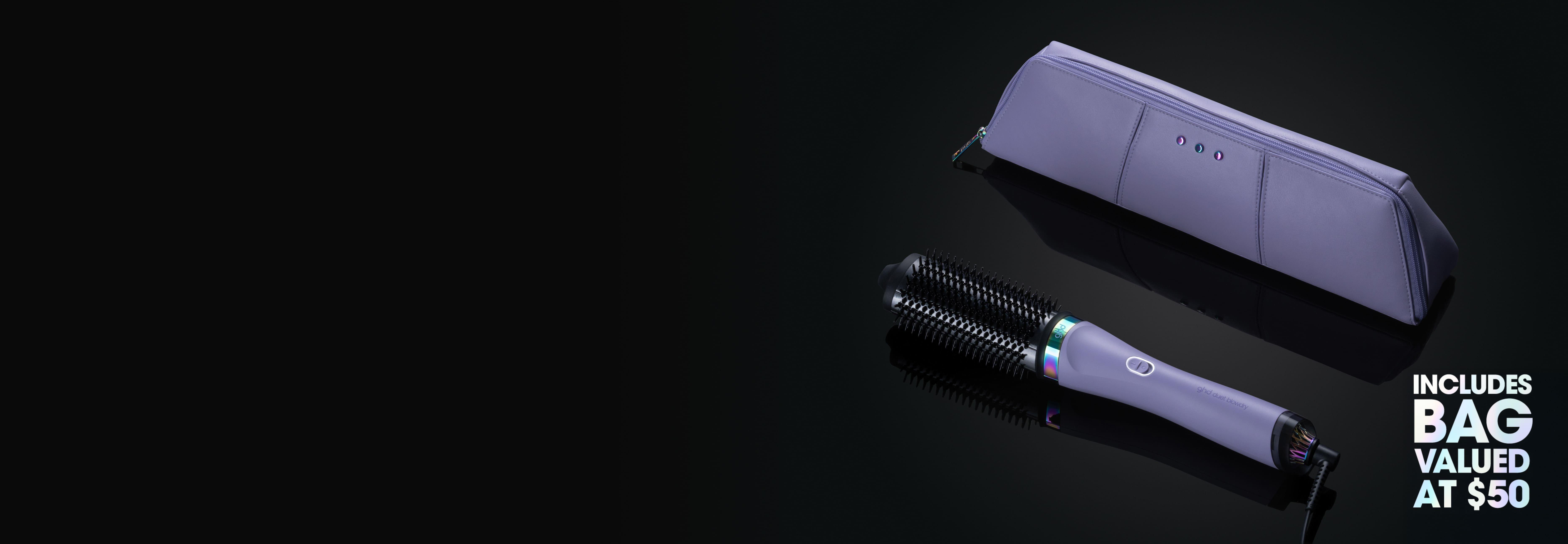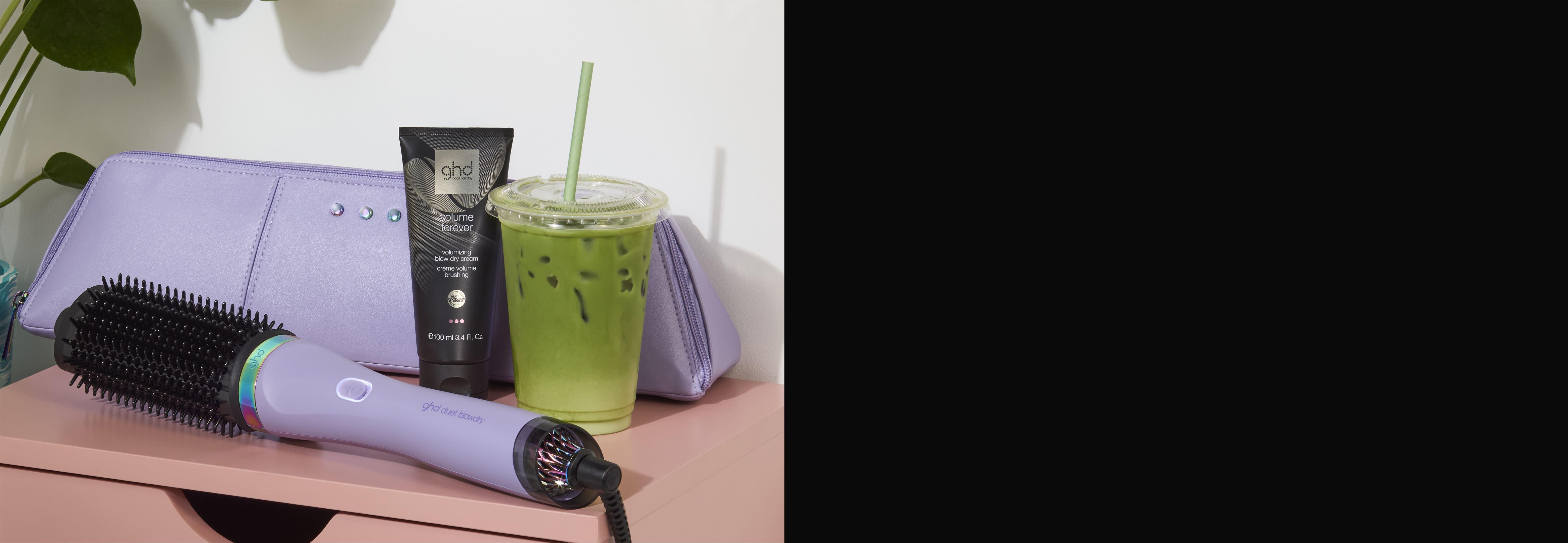 ghd duet blowdry hair dryer brush has been encased in a cosmic galactic lilac hue accompanied by a matching heat resistant bag² (valued at $50).