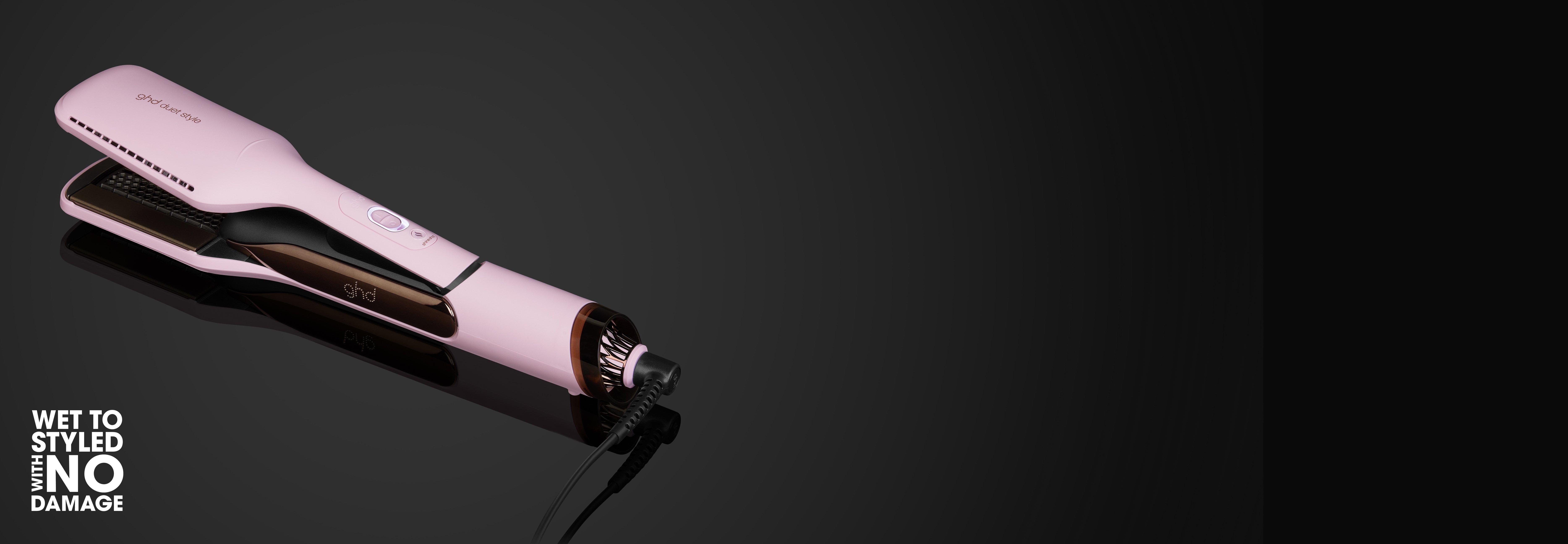 New ghd duet style has been draped in a pink sorbet shade and is accompanied by a matching heat-resistant bag and mat⁴ (valued at $50).