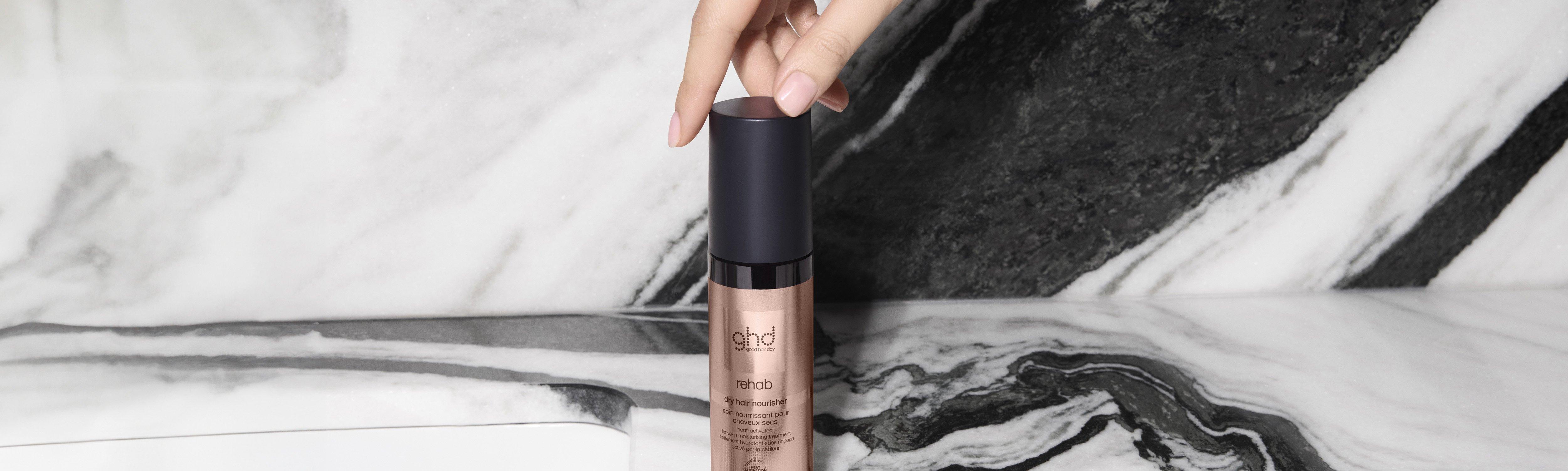 Pflege Dein Haar von innen heraus mit dem neuen GHD REHAB DRY HAIR NOURISHER. Das Wärme aktivierte Leave-In Treatment wurde speziell für die Anwendung auf feuchtem Haar entwickelt und sorgt für bis zu 3x weniger Frizz¹.