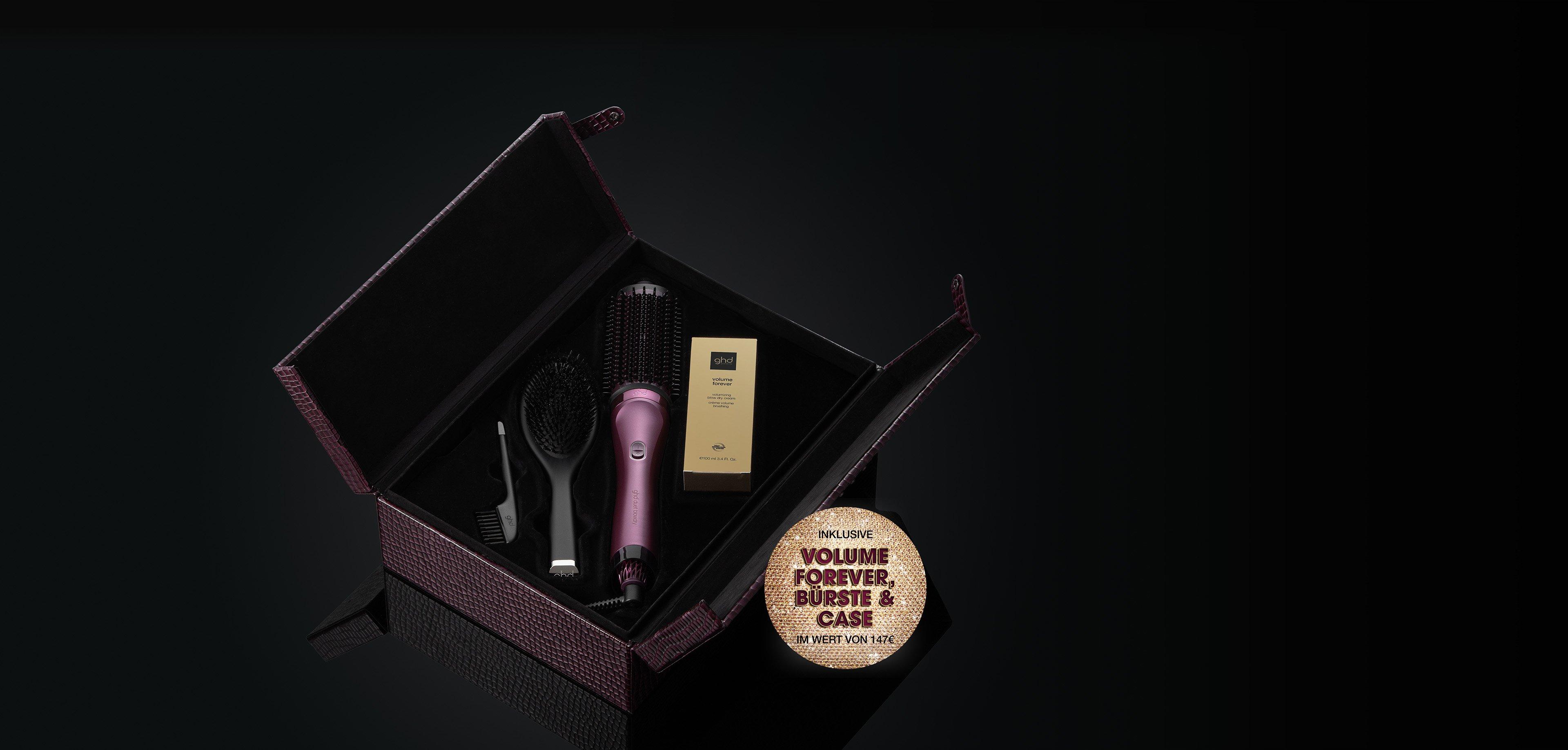 - Inklusive luxuriösem Case⁸, Stylingunterlage⁹, ghd volume forever & oval dressing brush (Wert: 147€)