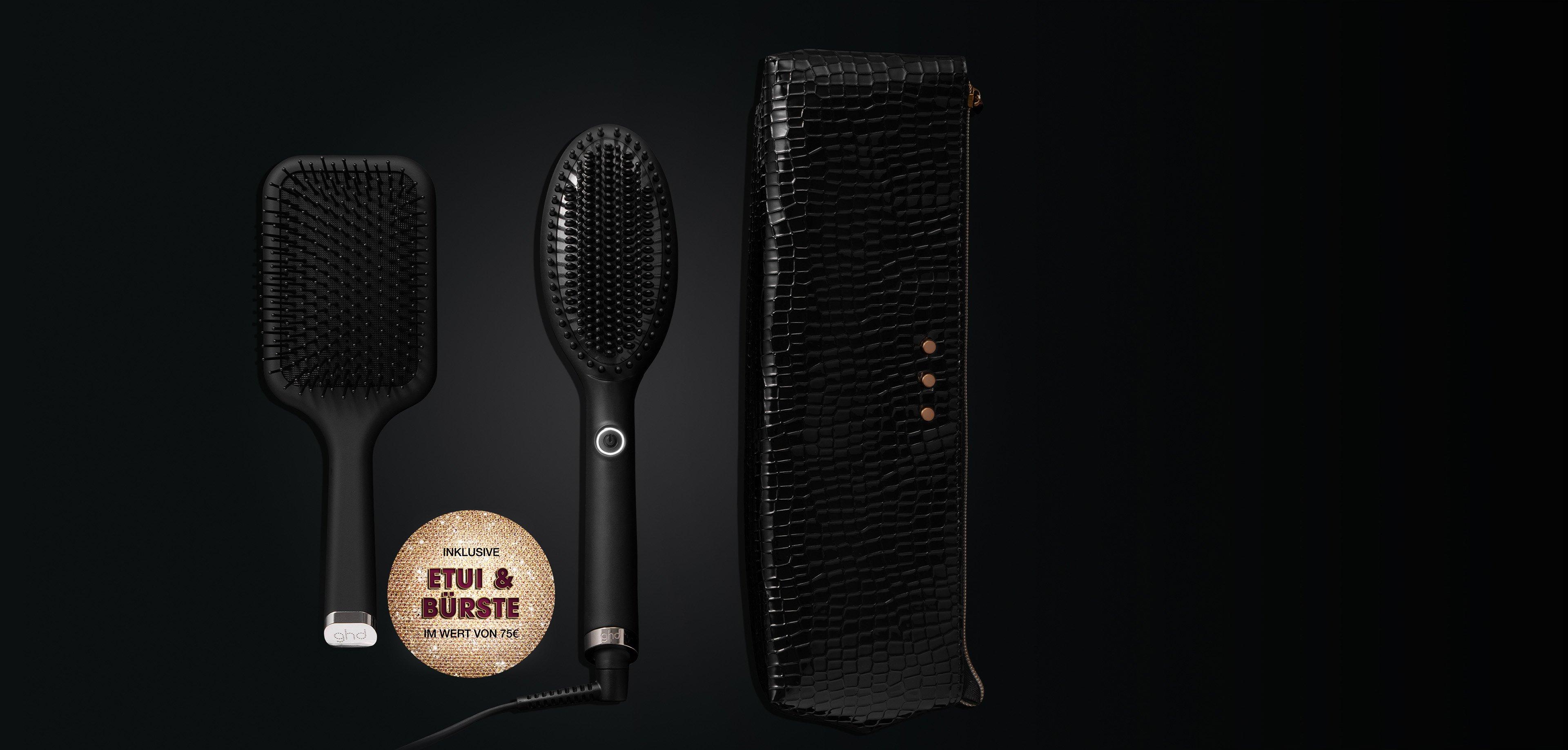 Unser Late Check-Out Hero, die ghd glide Hot Brush, wird begleitet von einer ghd Paddle Brush und einer luxuriösen hitzebeständigen Tasche¹.