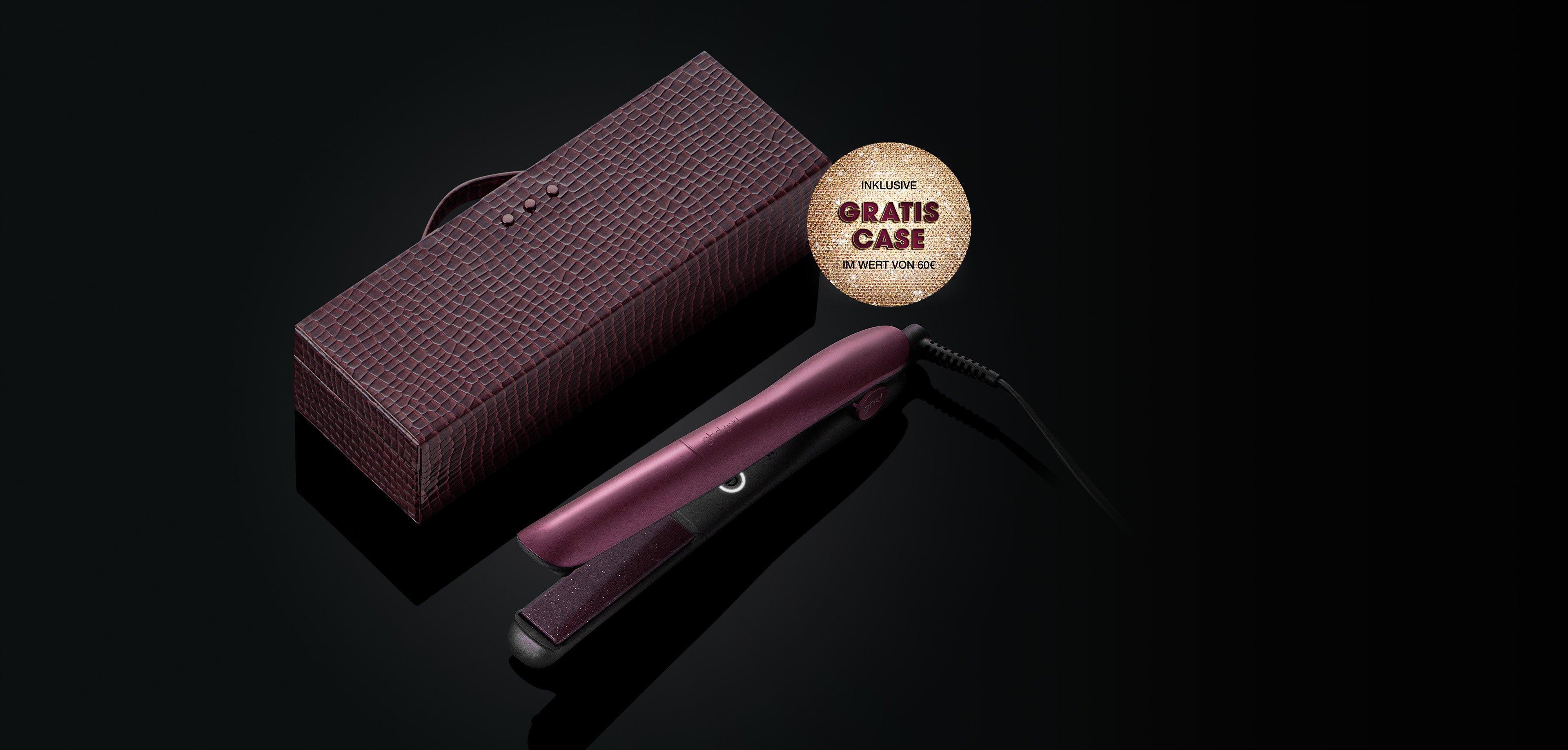 Unser beliebter ghd gold® Styler erstrahlt für kurze Zeit in einem traumhaften Kirschrot mit passenden Metallic-Akzenten.