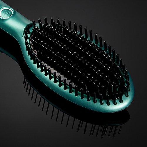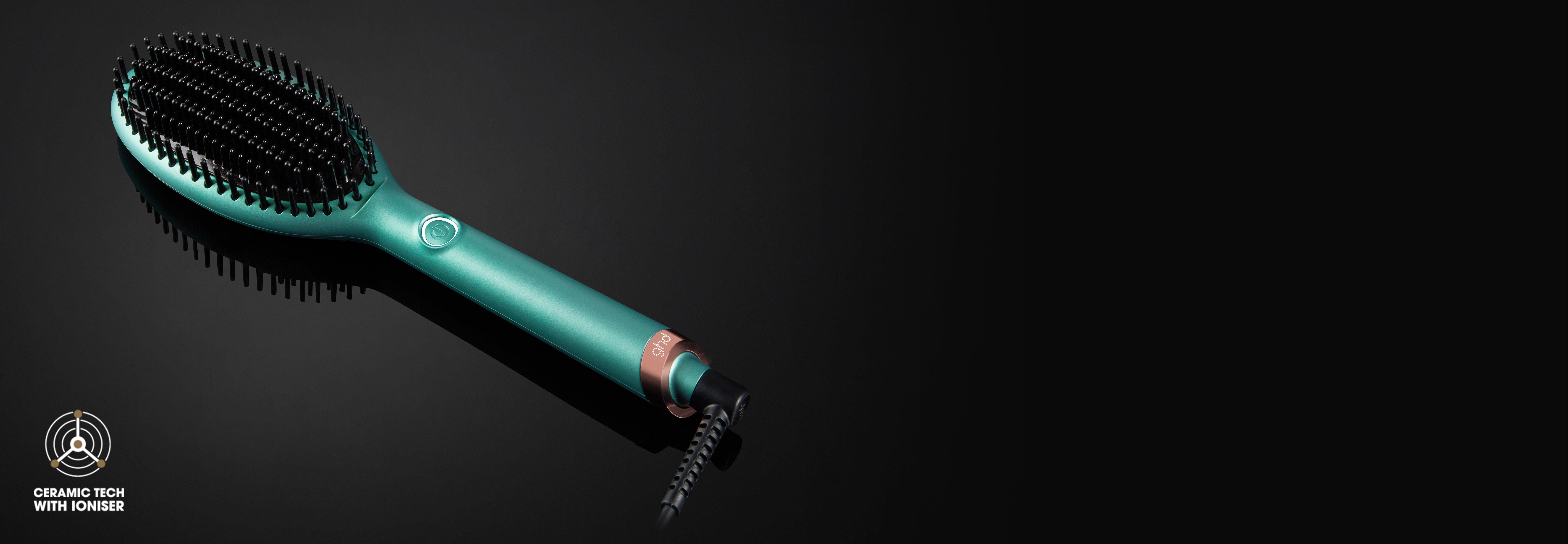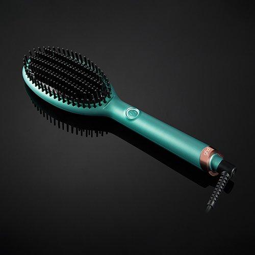 Vores tidsbesparende ghd glide smoothing hot brush i forførende jade, pakket i et matchende, støvet pink etui