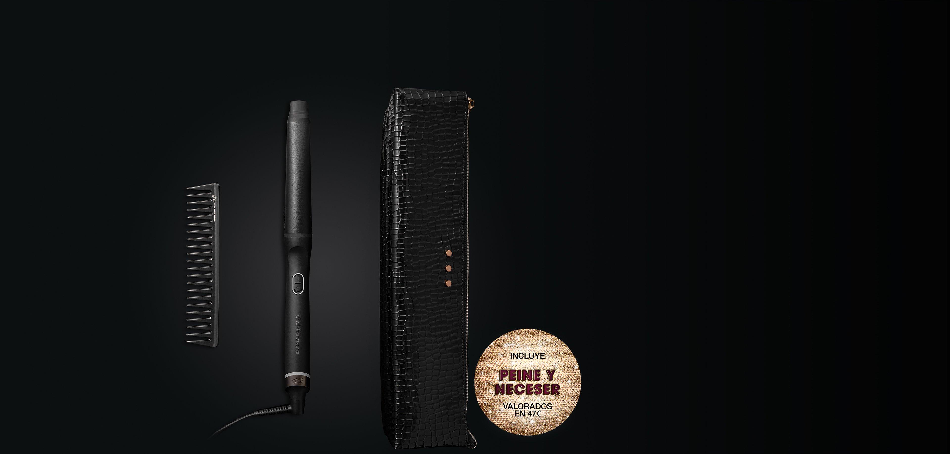 El rizador con tecnología inteligente que permite ahorrar tiempo de peinado, ghd Chronos Curve Conical, viene acompañado de un neceser térmico resistente al calor a juego¹ y del peine desenredante ghd Comb Out para que luzcas un peinado impecable estas fiestas.