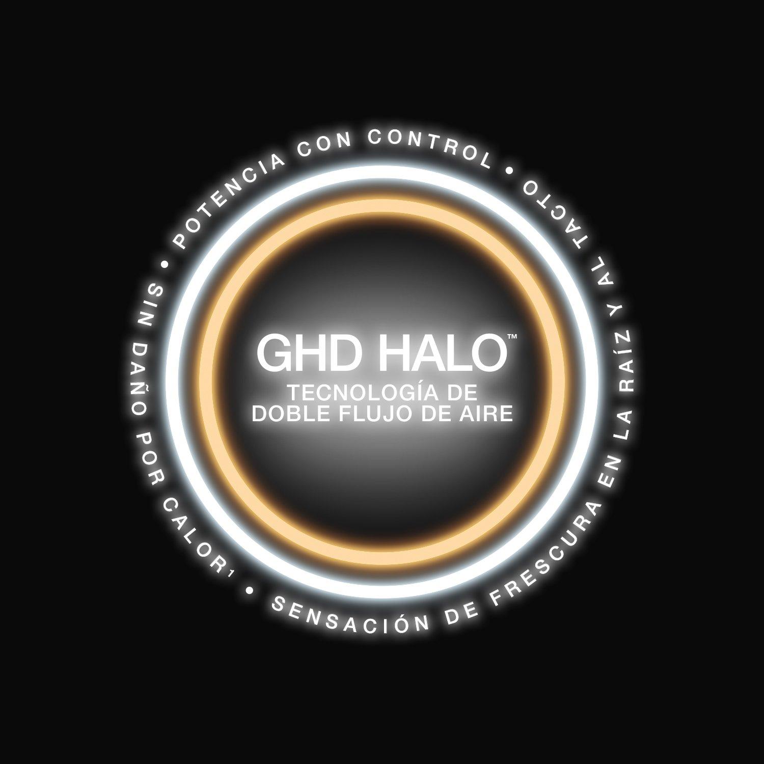 Secador iónico profesional ultra-rápido con tecnología ghd Halo™ y doble flujo de aire.