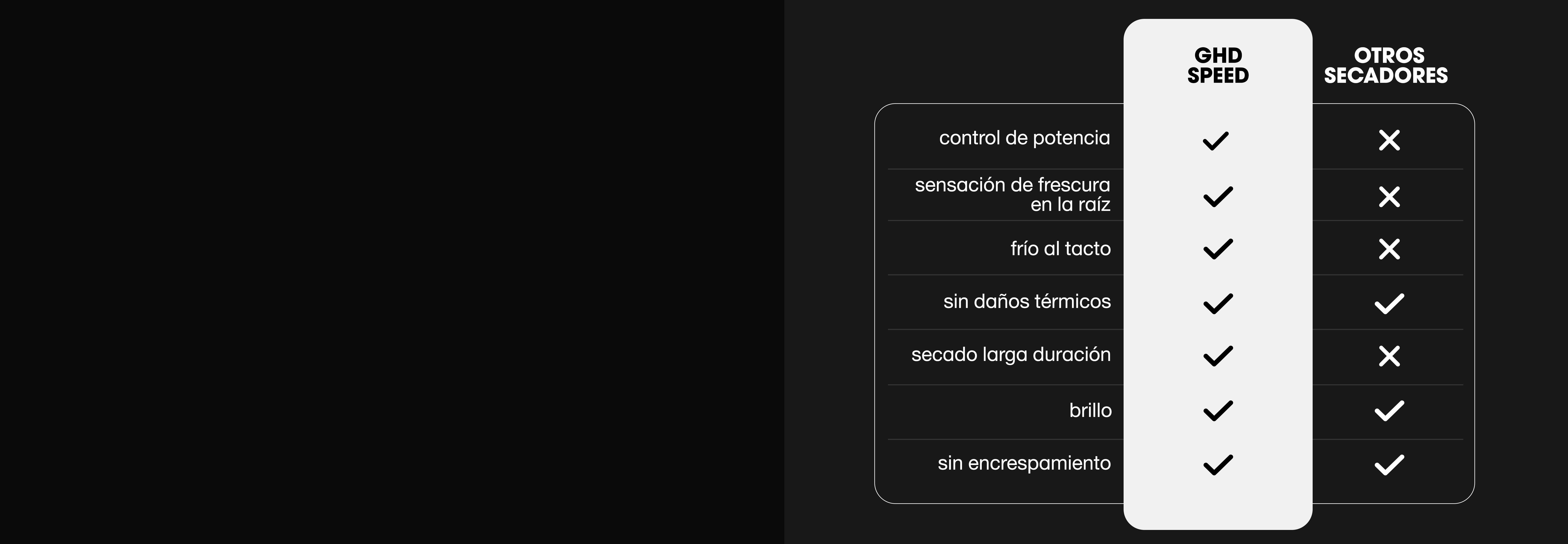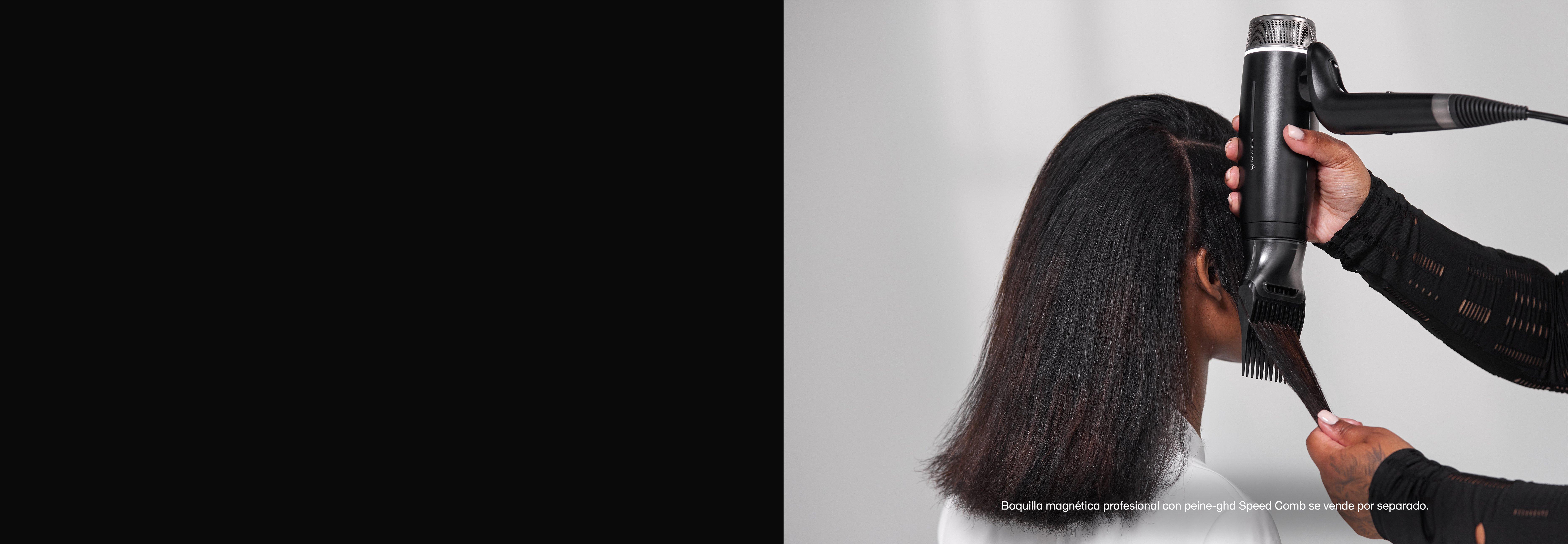 Demasiada potencia provoca encrespamiento, y demasiado control un secado más lento. El equilibrio perfecto se obtiene con ghd Speed, diseñado para proporcionar un flujo de aire rápido y concentrado que permite un secado ultra-rápido y un acabado profesional suave.