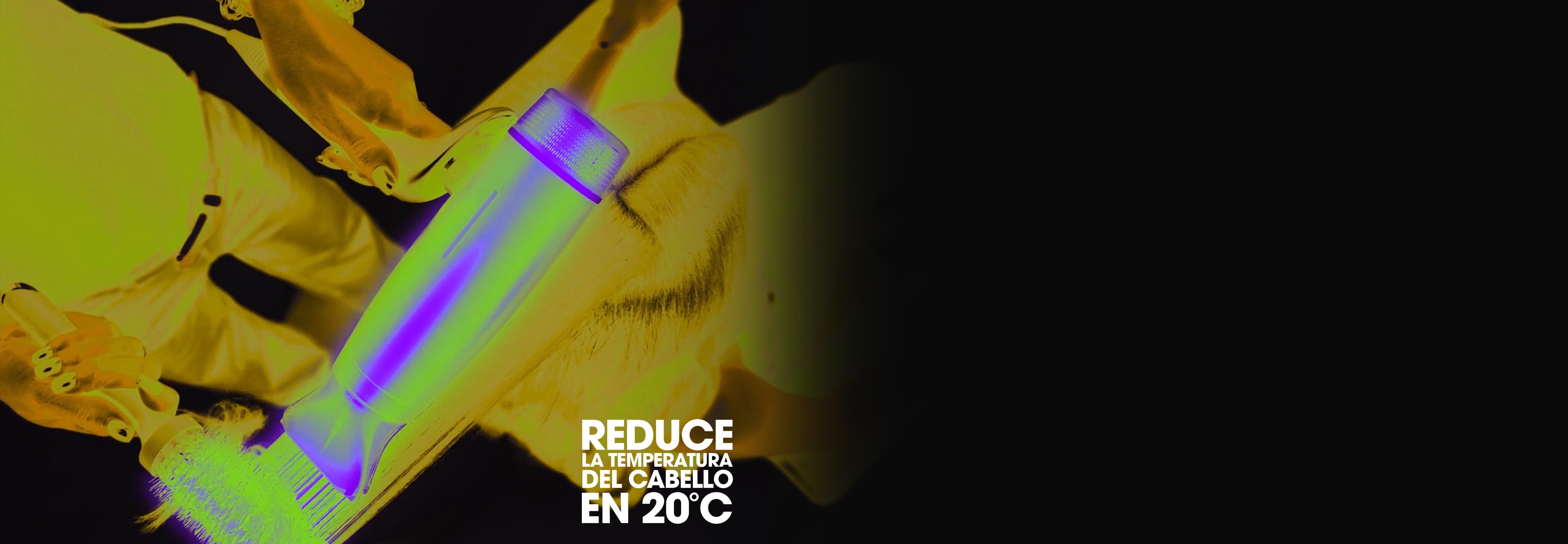 Un fluoj de aire frío envuelve el aire caliente para un secado más rápido, aportando sensación de frescura en raíz y al tacto sin daños por calor¹.