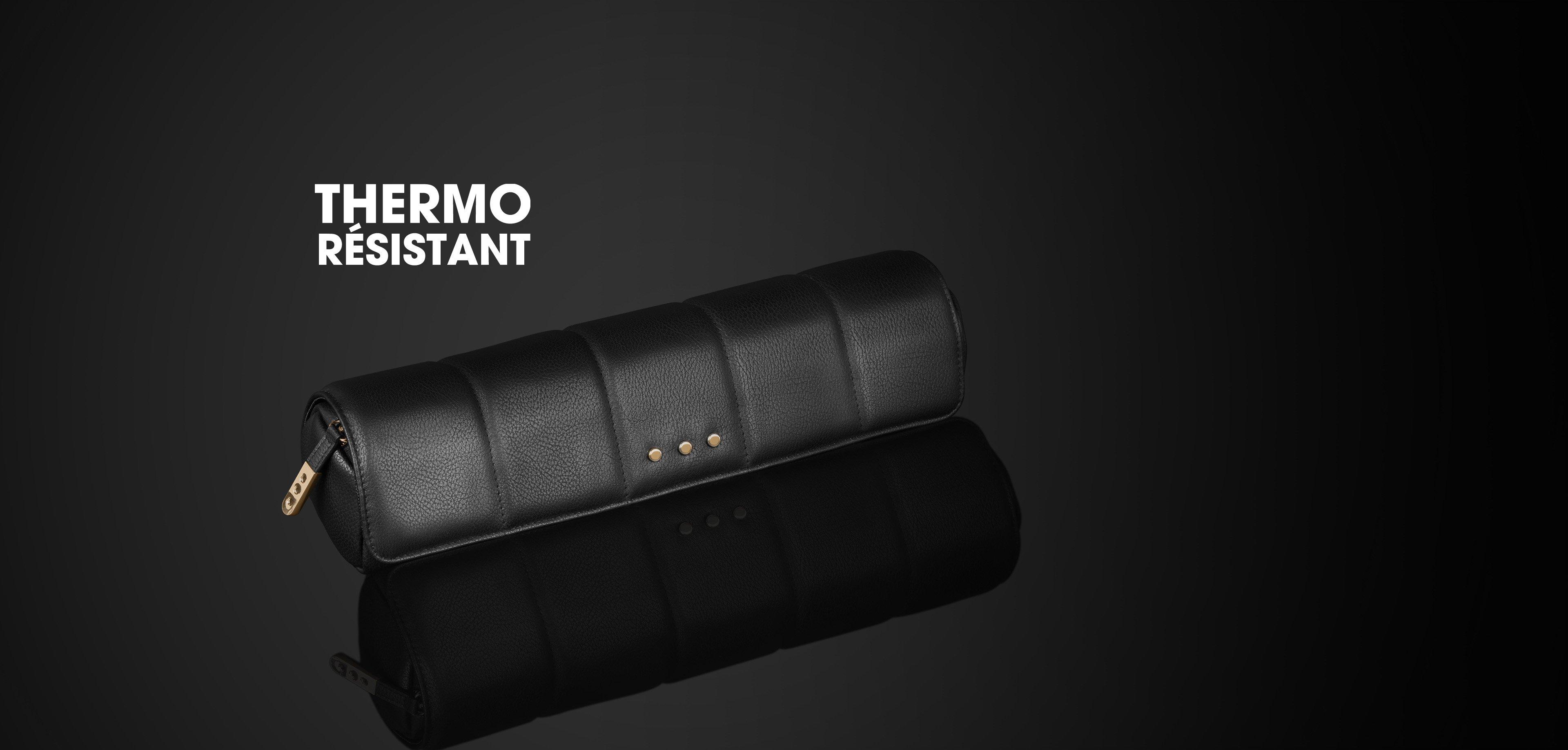 Pensée pour être utilisée jusqu’à 185 °C lors du coiffage, cette élégante trousse en similicuir protège votre boucleur tout en se transformant en tapis thermorésistant, pour un coiffage sans prise de tête.