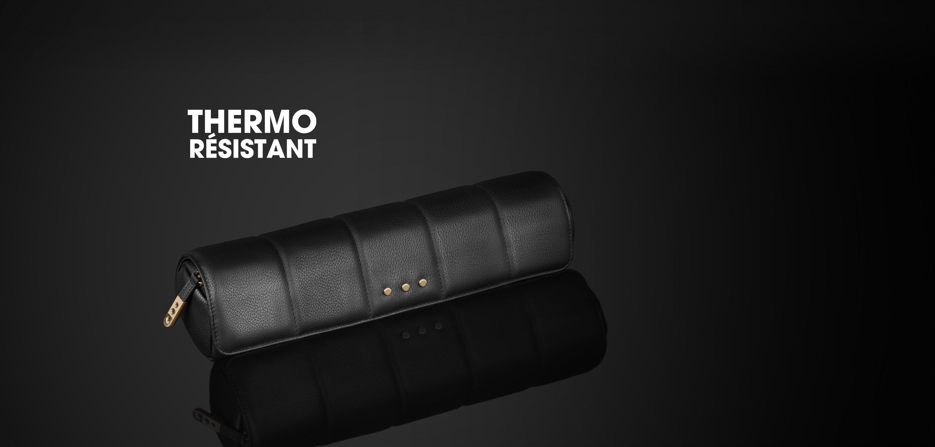 Déroulez-la pour découvrir un tapis thermorésistant, idéal pour poser votre outil en toute sécurité pendant son utilisation. Que vous soyez chez vous ou en déplacement, gardez votre brosse protégée dans un écrin à la fois chic et résistant à la chaleur.