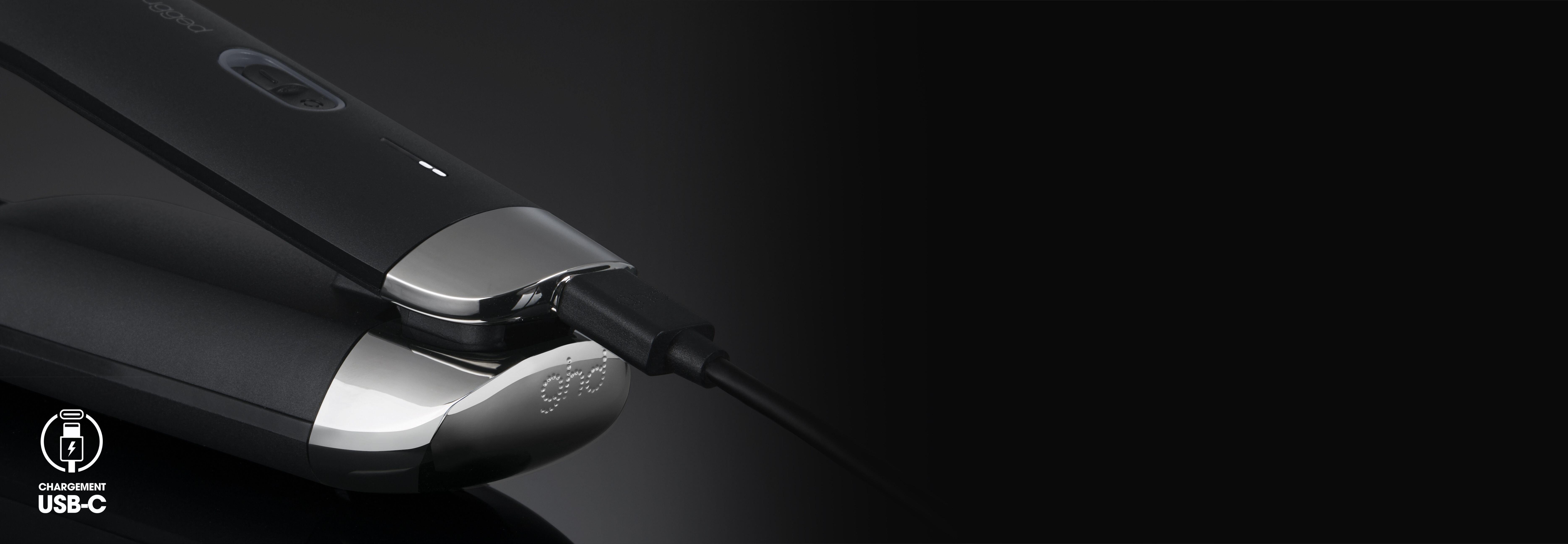 Bien sûr, il est évident que le lisseur sans fil noir ghd unplugged nécessite d’être rechargé pour pouvoir être utilisé sans fil. Il se recharge en seulement deux heures à partir d’un port USB-C. Vous pouvez donc le charger dans votre voiture, depuis votre ordinateur portable ou bien depuis une prise secteur grâce à son adaptateur. Après ses deux heures de recharges, vous pouvez utiliser votre lisseur ghd sans fil n’importe où et n’importe quand pendant 20 minutes** ! Le temps idéal pour effectuer des retouches à votre coiffage. En revanche, il est important de noter qu’il est impossible d’utiliser votre lisseur ghd sans fil pendant que celui-ci est en charge. Il est muni d’un voyant lumineux qui indique le niveau de la batterie de votre lisseur sans fil noir.