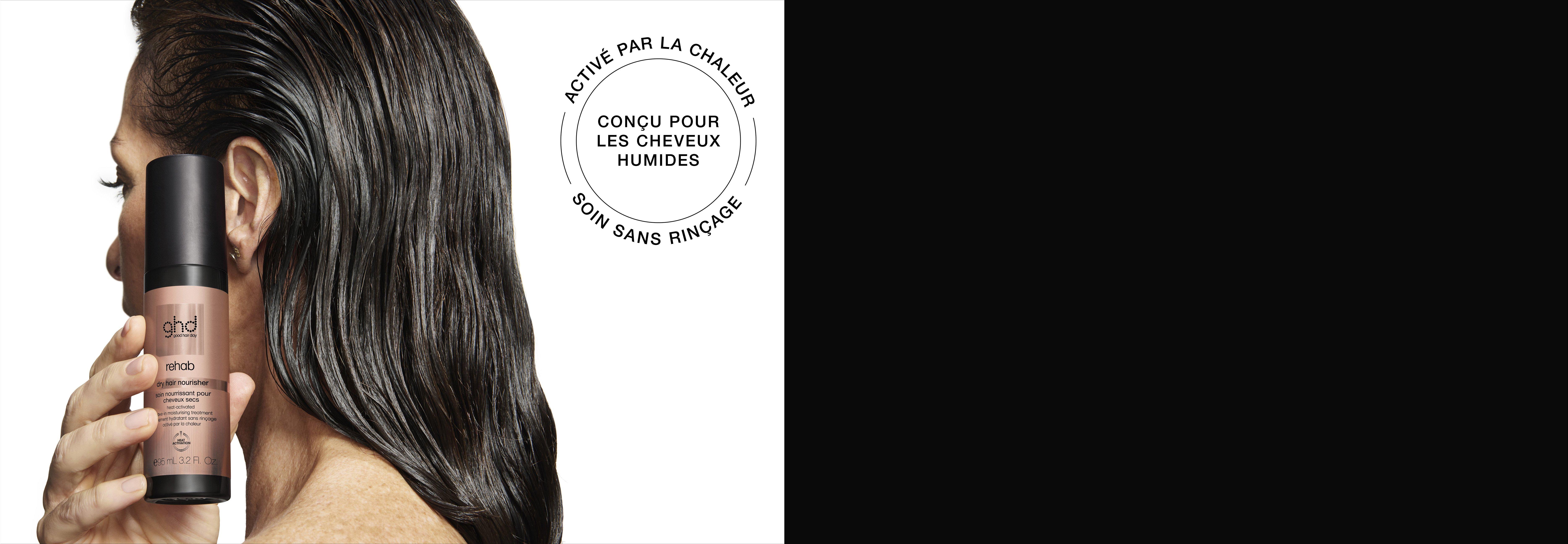 Traitez vos cheveux avec ghd Rehab puis activez-les avec la chaleur de votre lisseur ou d'un outil ghd Duet 2-en-1.