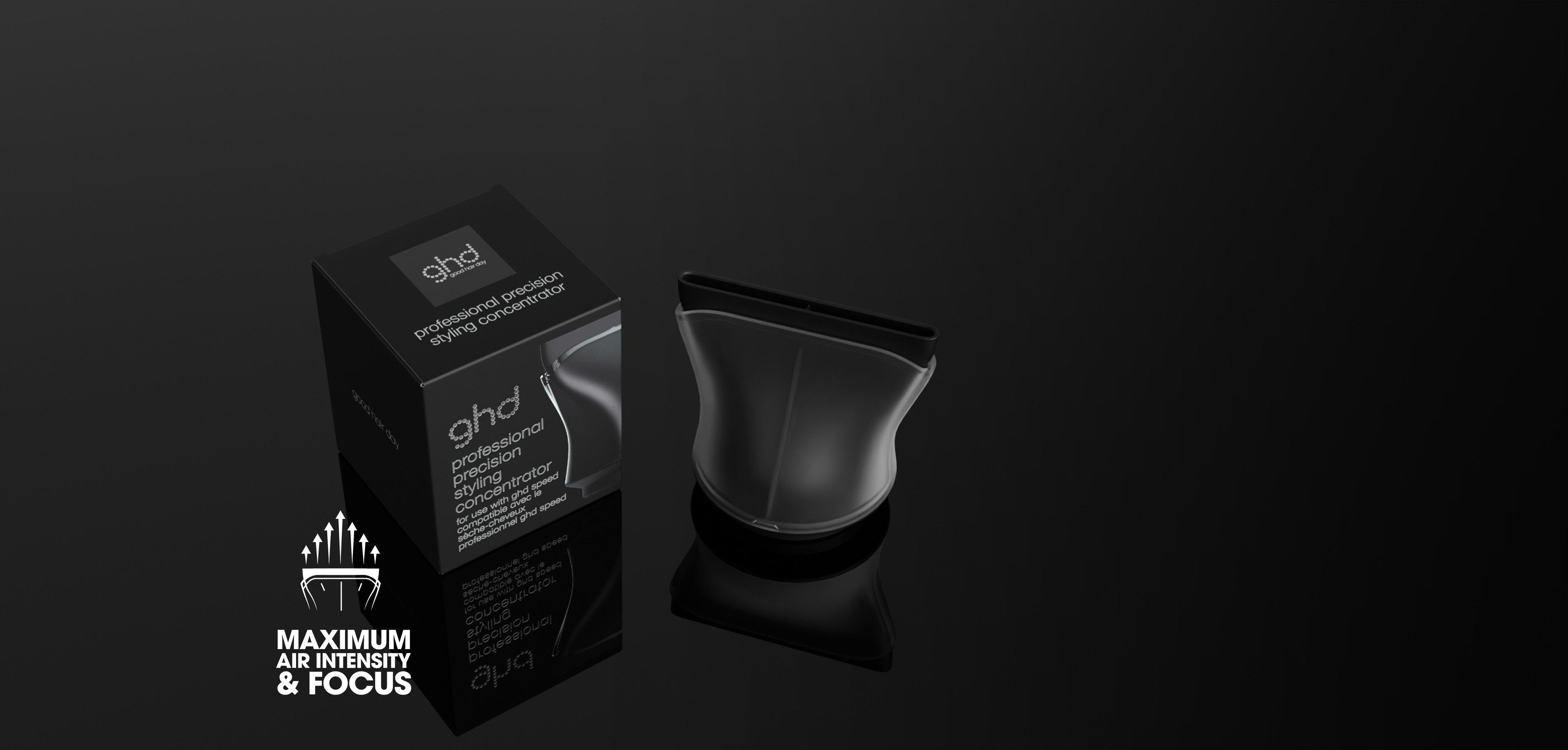 Unlock your most creative styles with the ghd professional styling concentrator. Featuring a narrow 66mm professional outlet, this hair dryer nozzle delivers a high-pressure mixed-airflow for a hotter airstream that enhances shape, boosts shine by 64%¹, and lifts roots by 3x⁴, ideal for precision styling with professional results. Fully compatible with the ghd speed ionic hair dryer, the precision styling concentrator hair dryer attachment is your new go-to for the perfect blow dry.