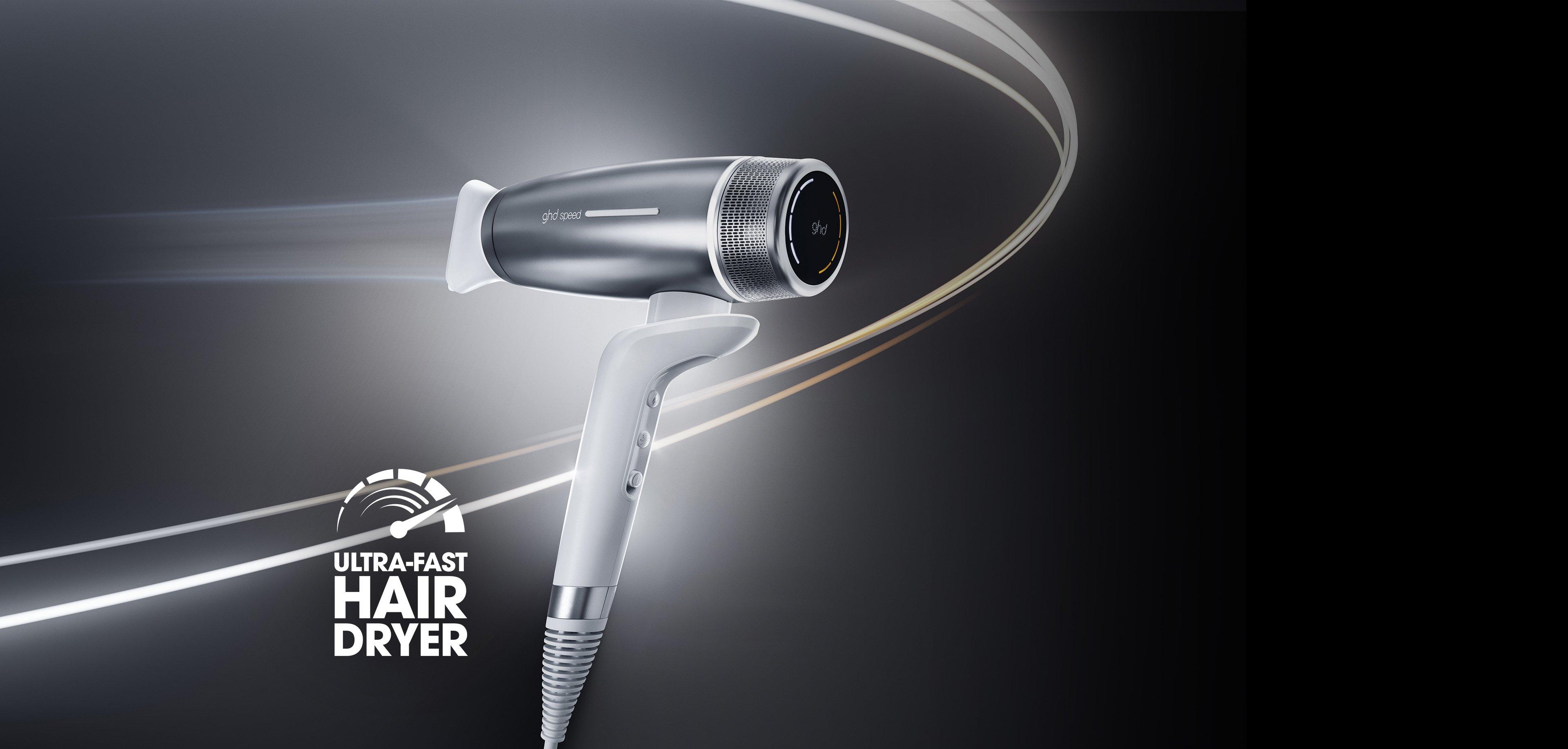 Our unbeatably fast hair dryer - experience a new era in blow drying with the ghd Speed ionic hair dryer - featuring breakthrough ghd halo™ dual-airflow technology that unites power with control for cool-scalp & cool-touch with no heat damage¹. Transform your styling routine with ultra-quick drying and flawless salon-smooth results.