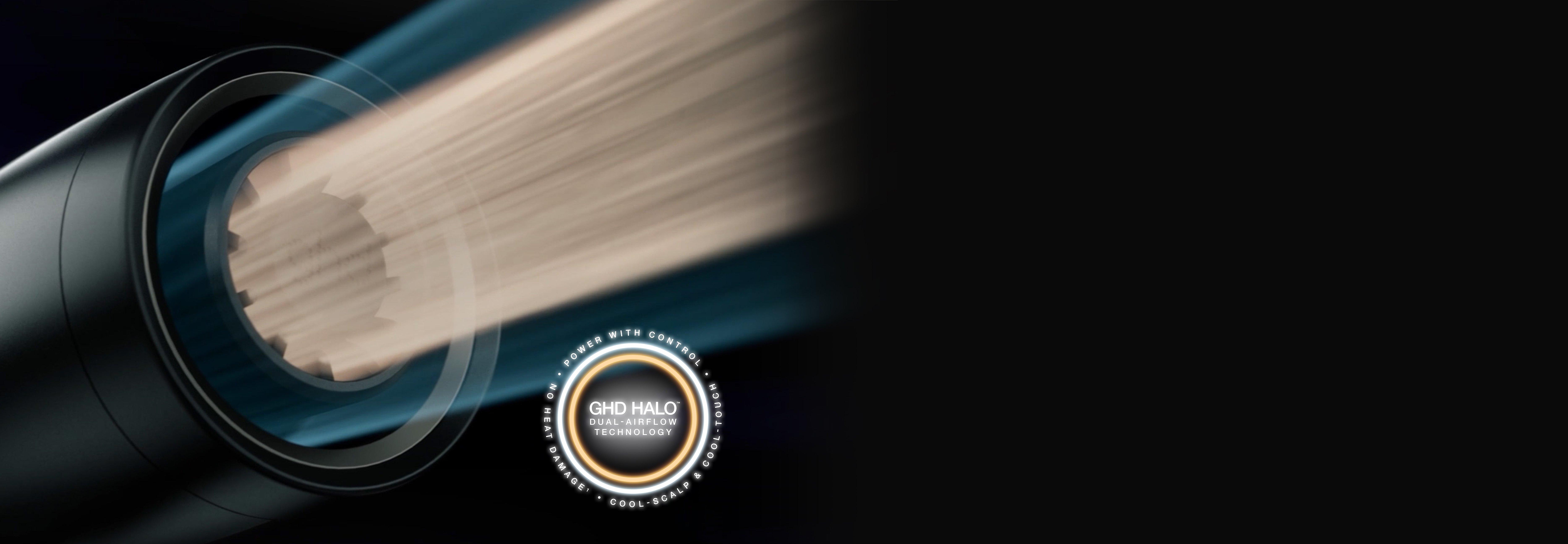 Ultra-fast ionic hair dryer featuring breakthrough ghd halo™ dual-airflow technology.