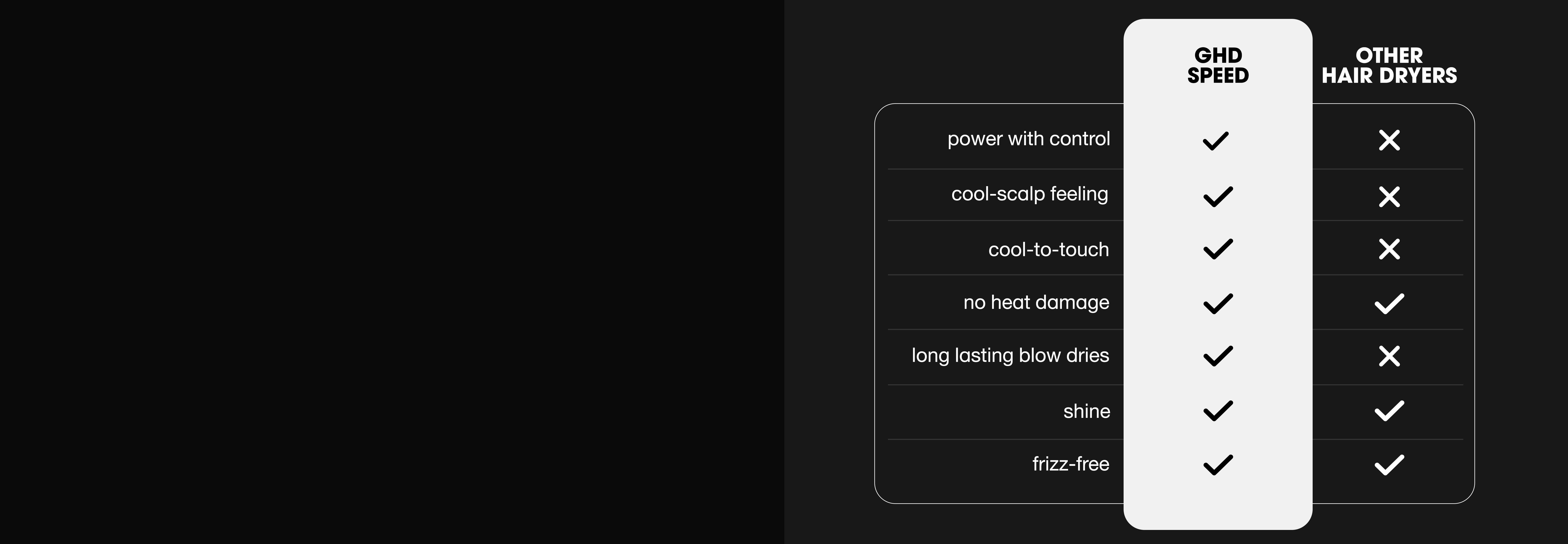 Too much power causes frizz but too much control can slow you down. That’s why we created ghd Speed, designed to deliver fast, focused airflow for ultra-fast drying and a smooth, salon-quality finish.