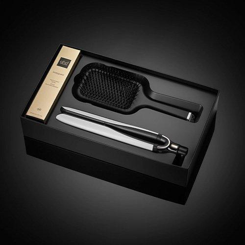 Our ghd platinum+ hair straightener now comes in a limited edition gift set. Joined by an array of luxury accessories, including the all-rounder paddle brush (worth £26) and a full-sized ghd bodyguard - heat protect spray for all hair types (worth £23.95).