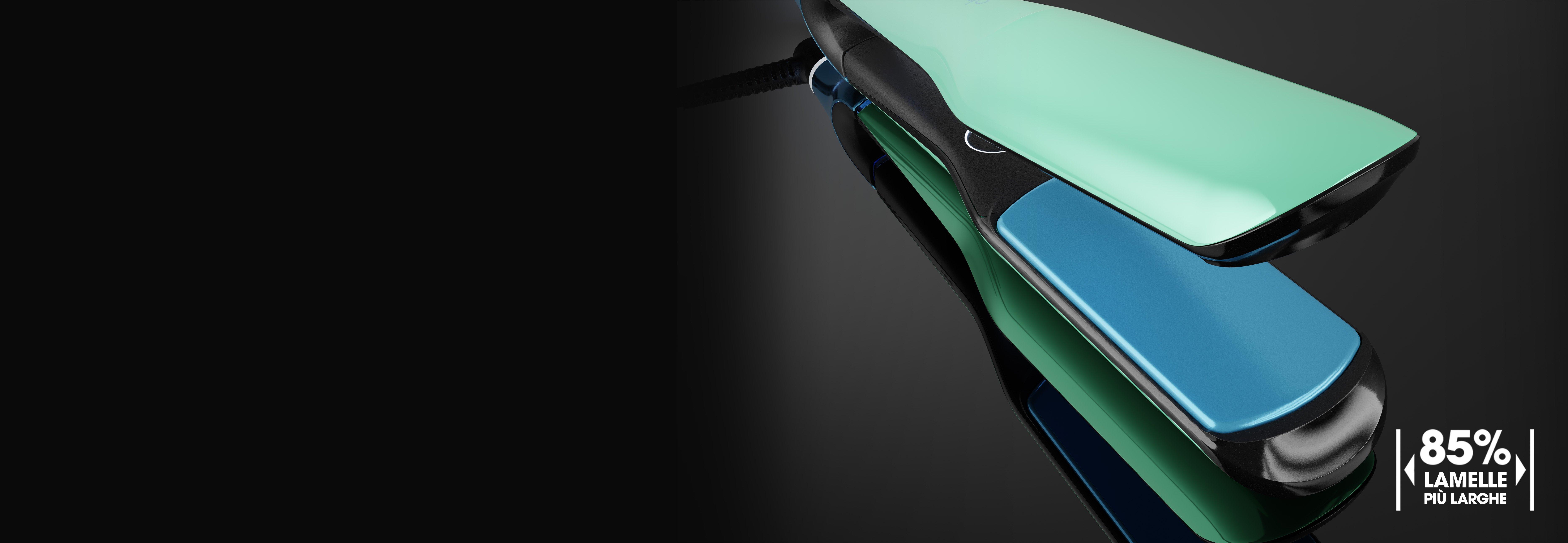 Le lamelle basculanti in ceramica, più ampie dell’85%¹, combinate con bordi più sottili del 24%⁹ e un design arrotondato, permettono di avvicinarsi maggiormente alle radici per risultati perfetti dalle radici alle punte, da qualsiasi angolazione. Il design elegante e ultra-ergonomico consente di cambiare stile con un semplice movimento della mano passando da look lisci a onde sontuose o waves glam.
