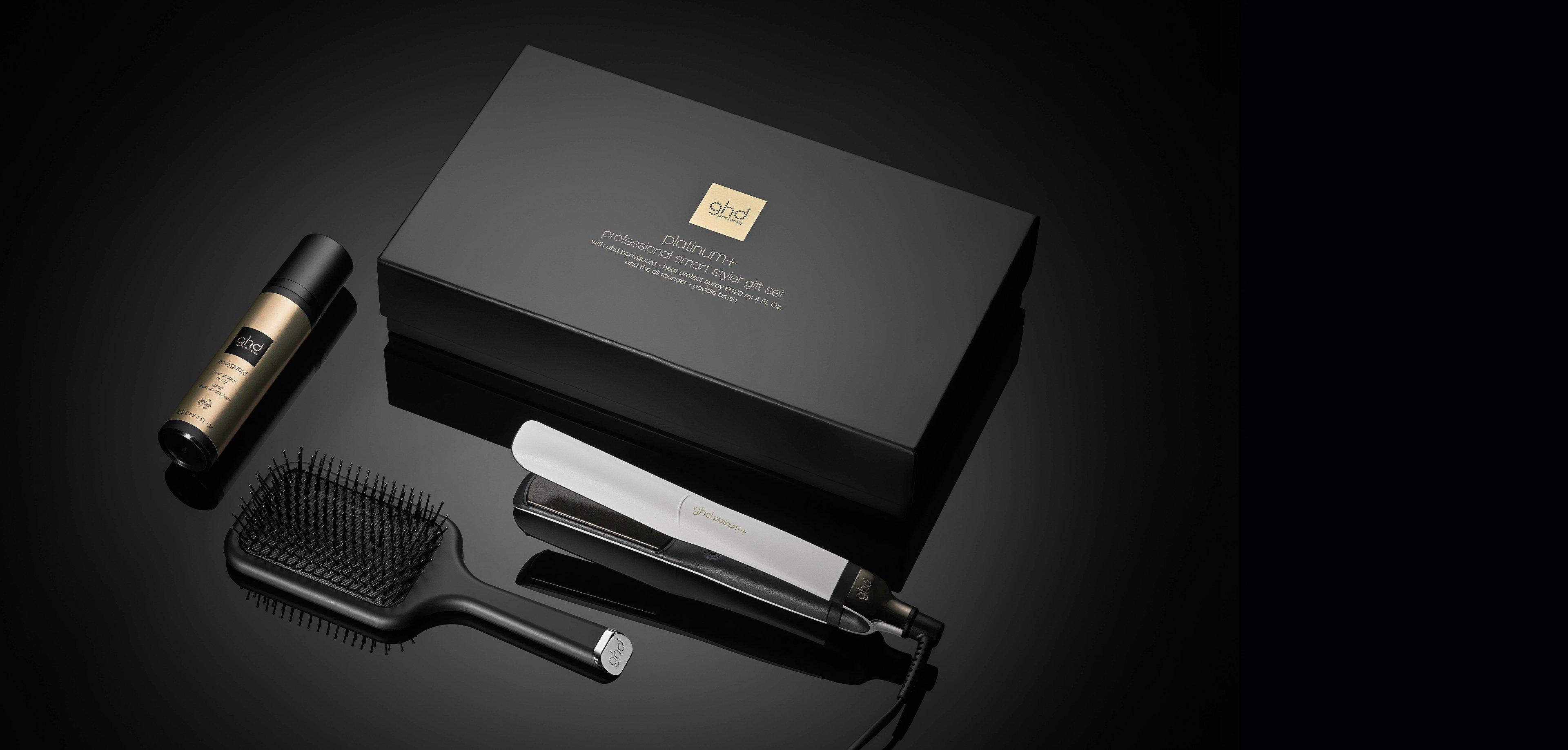 La nostra SMART styler ghd platinum+ bianca adesso disponibile in un gift set in edizione limitata con accessori luxury, tra cui la spazzola piatta ghd paddle brush (dal valore di €35,90) e lo spray termoprotettore per tutti i tipi di capelli ghd bodyguard da 120 ml (dal valore di €25,90).