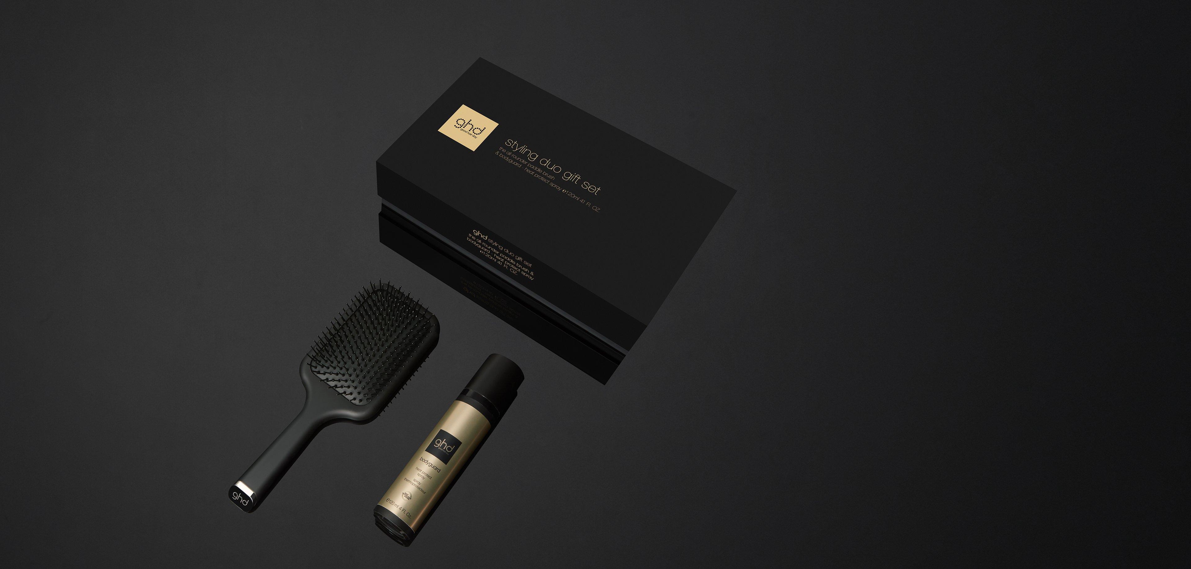 La nostra spazzola paddle brush e lo spray termoprotettore ghd bodyguard.