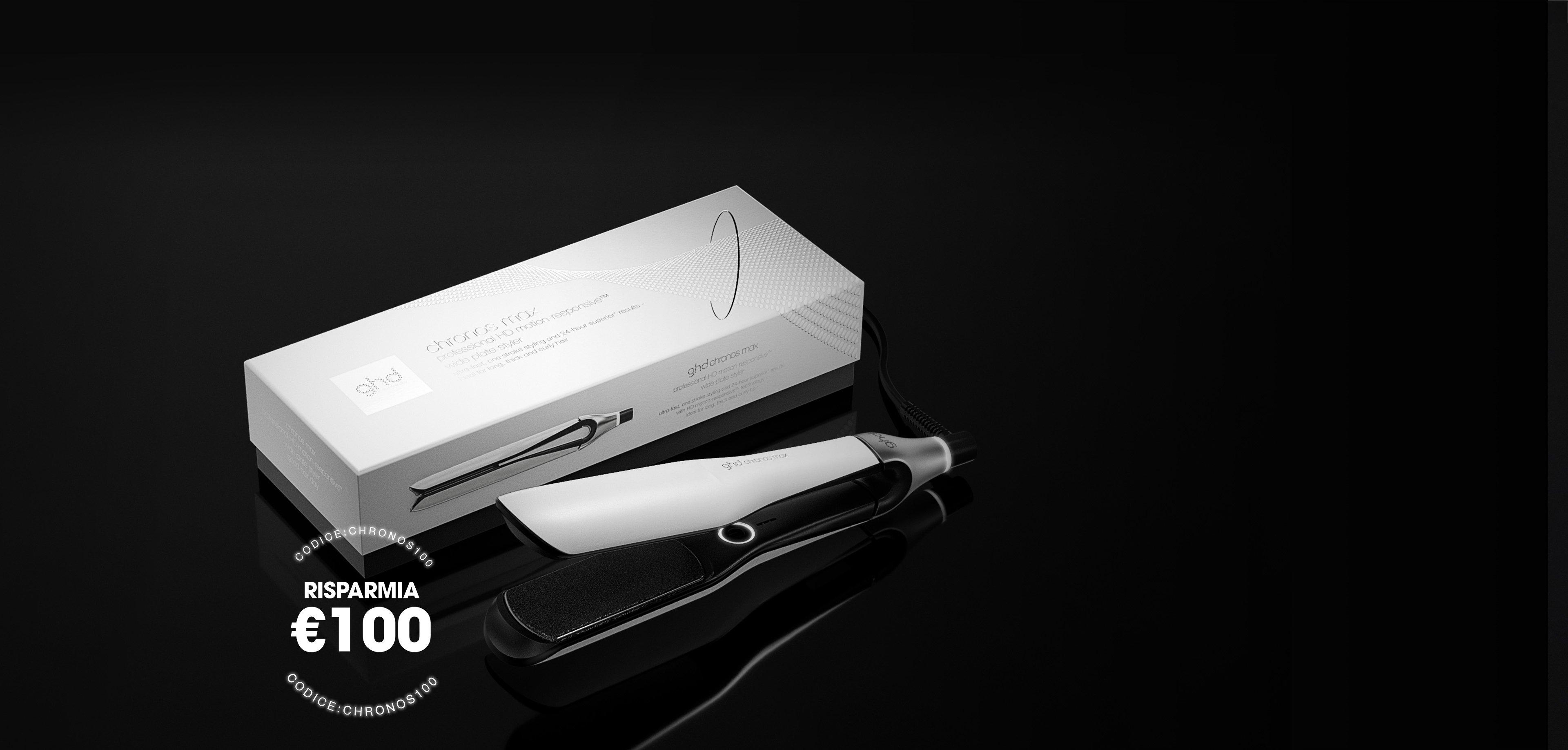 - Passa a ghd Chronos Max e ricevi €100 di rimborso restituendo la tua vecchia styler di qualsiasi brand, utilizzando il codice: CHRONOS100. Scopri di più QUI.