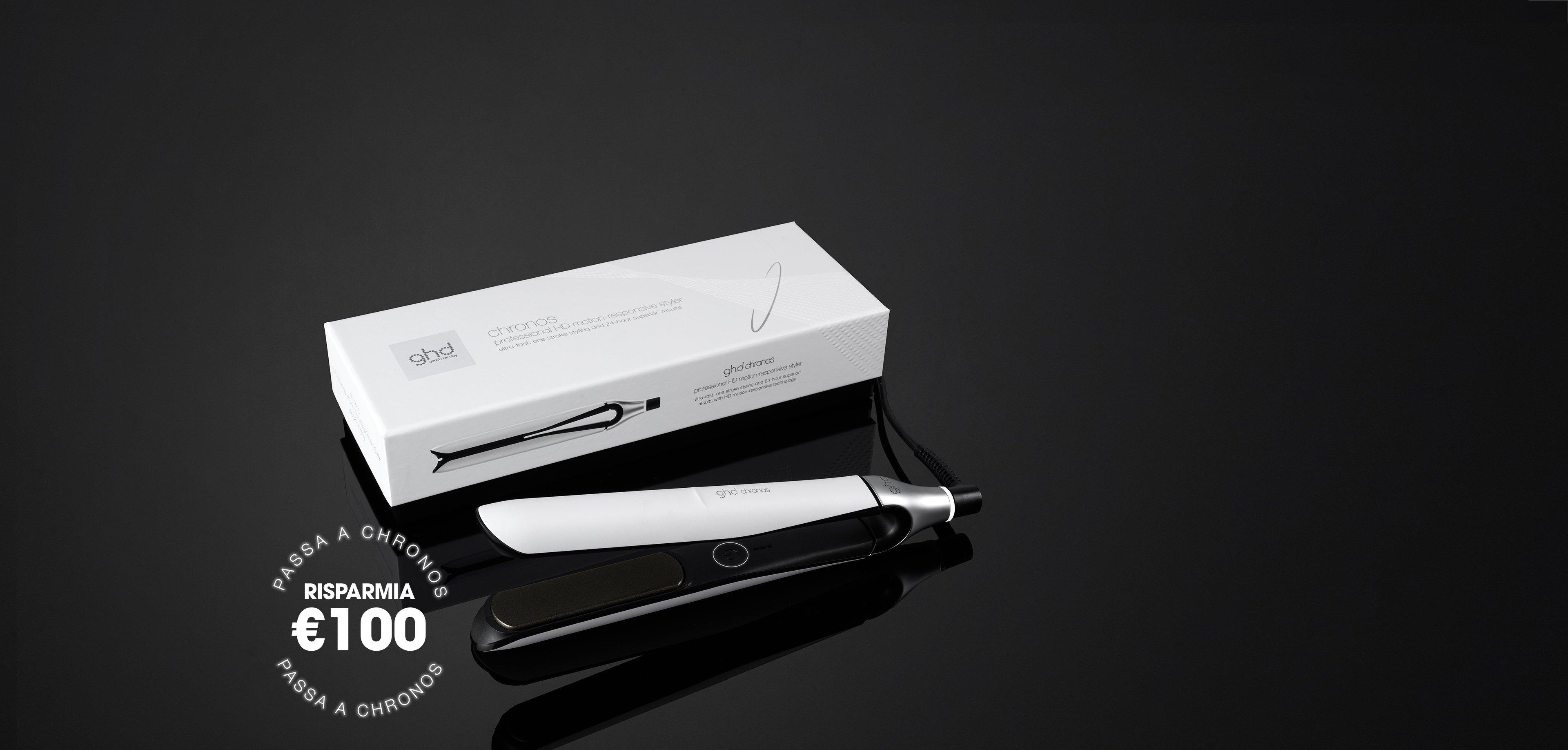 - Passa a ghd Chronos e ricevi €100 di rimborso restituendo la tua vecchia styler di qualsiasi brand, utilizzando il codice: CHRONOS100. Scopri di più QUI.