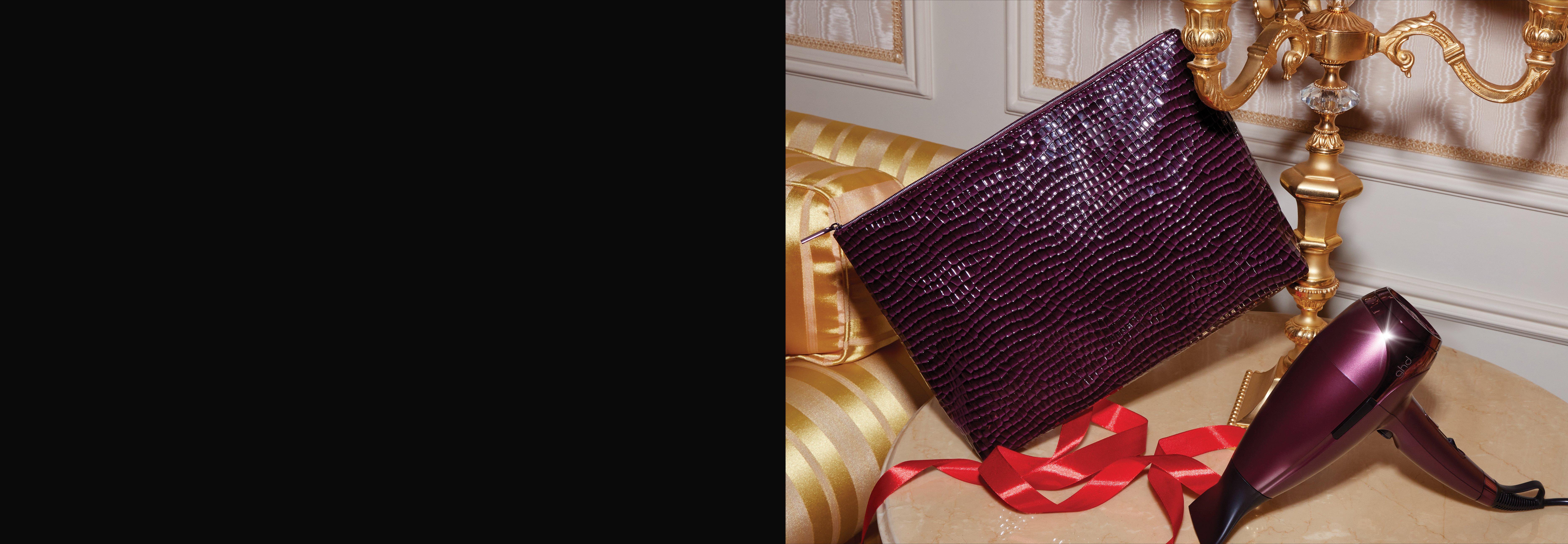 Celebra la stagione delle feste con look glamour ultra-lucenti grazie a questo bundle in edizione limitata—un duo di styling lussuoso in un audace rosso ciliegia. Combinando la piastra professionale ghd Gold® e il phon professionale ghd Helios™, questo esclusivo set unisce il glamour classico alle prestazioni professionali. Che tu stia partendo per una fuga festiva o desideri elevare il tuo look quotidiano, ogni strumento è accompagnato da un accessorio di lusso: un vanity case ispirata al viaggio¹ per la piastra e una dust bag coordinata per il phon, portando eleganza e styling impeccabile ovunque tu vada.