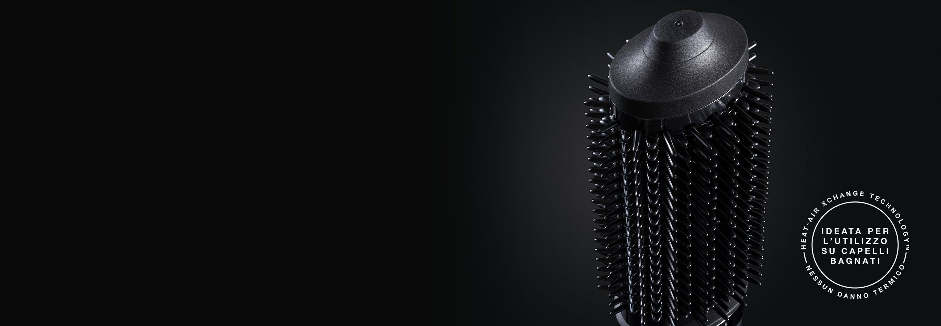 Grazie alla tecnologia Heat-Air Xchange™, il motore compatto ma potente spinge il flusso d’aria attraverso una resistenza a basso consumo e un sistema aerodinamico unico. Questo trasforma il flusso in energia termica, riscaldando la superficie ovale del cilindro e le setole anti-groviglio per consentire asciugatura e styling simultanei. Niente capelli bruciati¹, nessun compromesso – solo risultati impeccabili in un unico gesto.