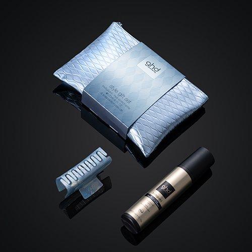 Il set include lo spray termoprotettivo ghd bodyguard per tutti i tipi di capelli, che crea una barriera invisibile contro i danni quotidiani causati dal calore. Completa il tuo look con la clip in edizione limitata blu ghiaccio, tutto ordinatamente confezionato in una pochette blu cristallo.