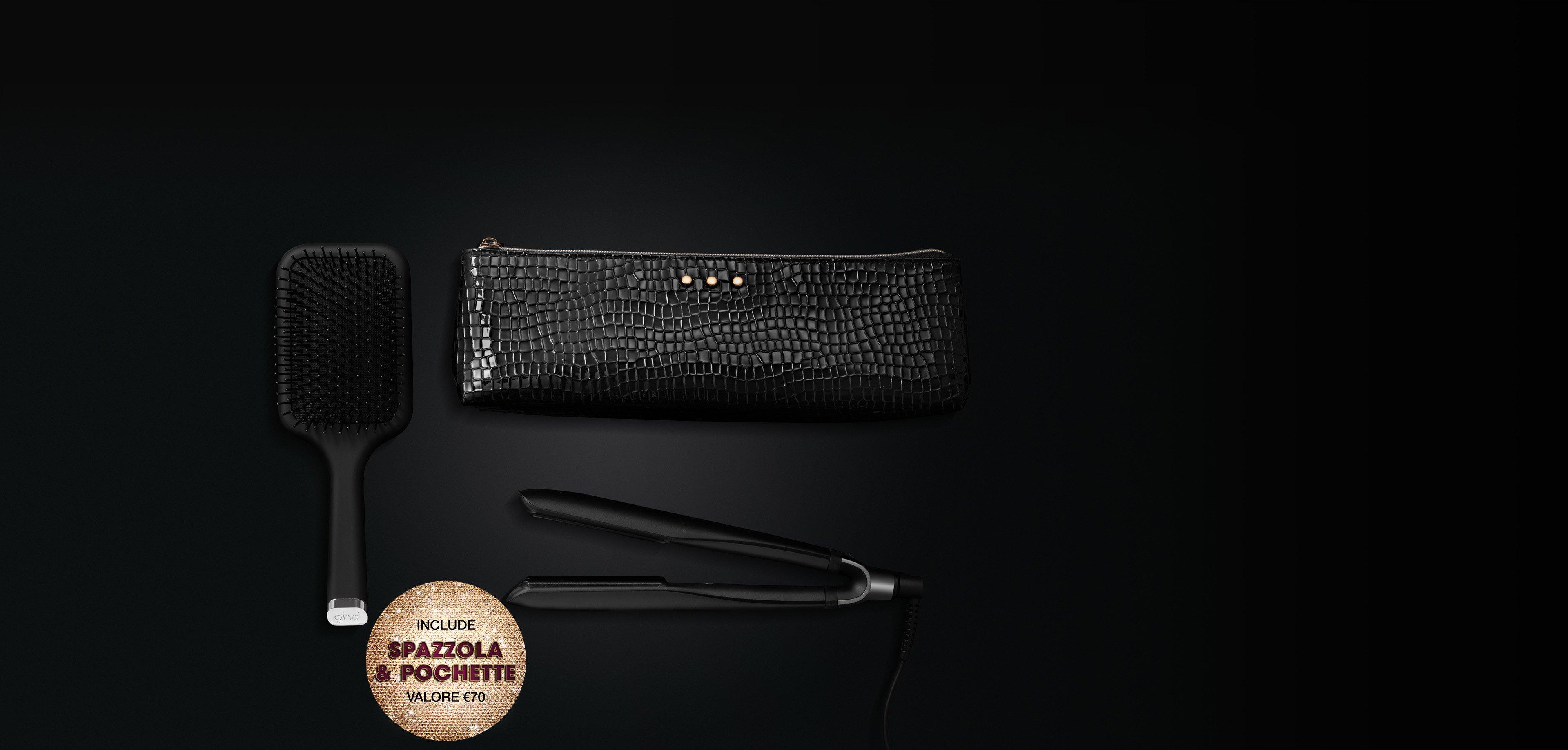 Ti presentiamo il lussoso cofanetto ghd Platinum+ Gift Set, comprende: la styler intelligente ghd Platinum+, la spazzola piatta ghd paddle brush e un'elegante pochette termoresistente.