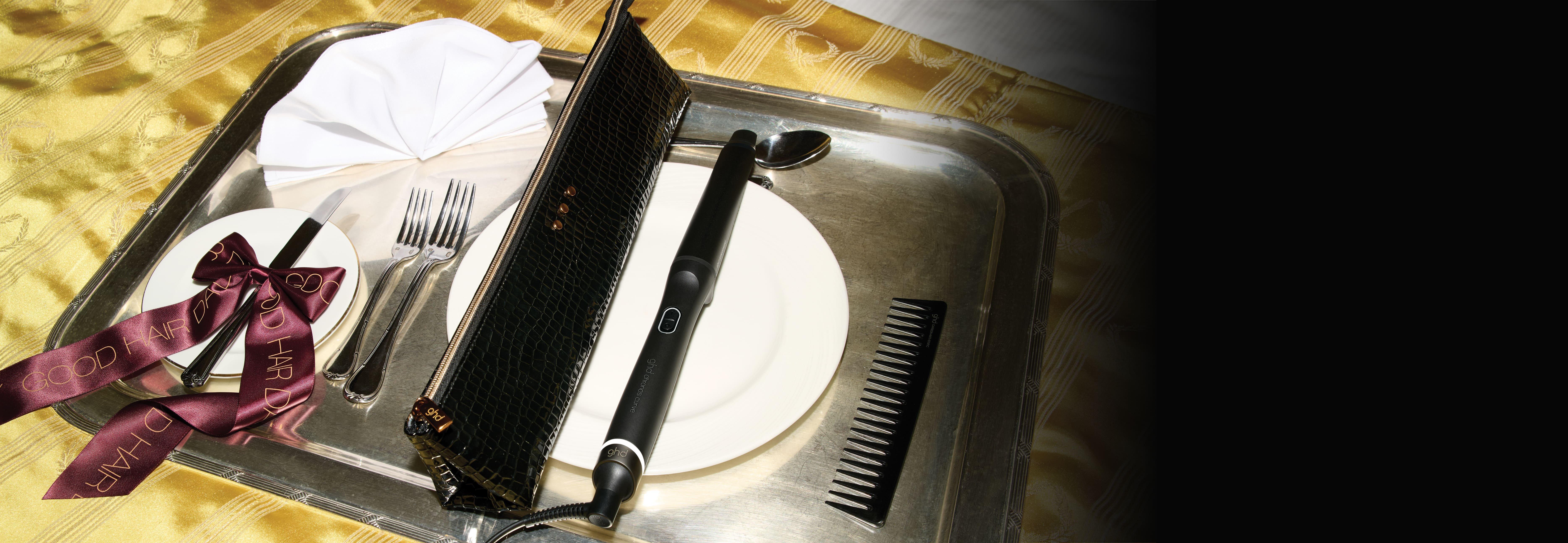 Our time-saving ghd chronos curve conical wand is gifted with a luxe heat-resistant bag* and a ghd comb out detangling comb for flawless festive styling.