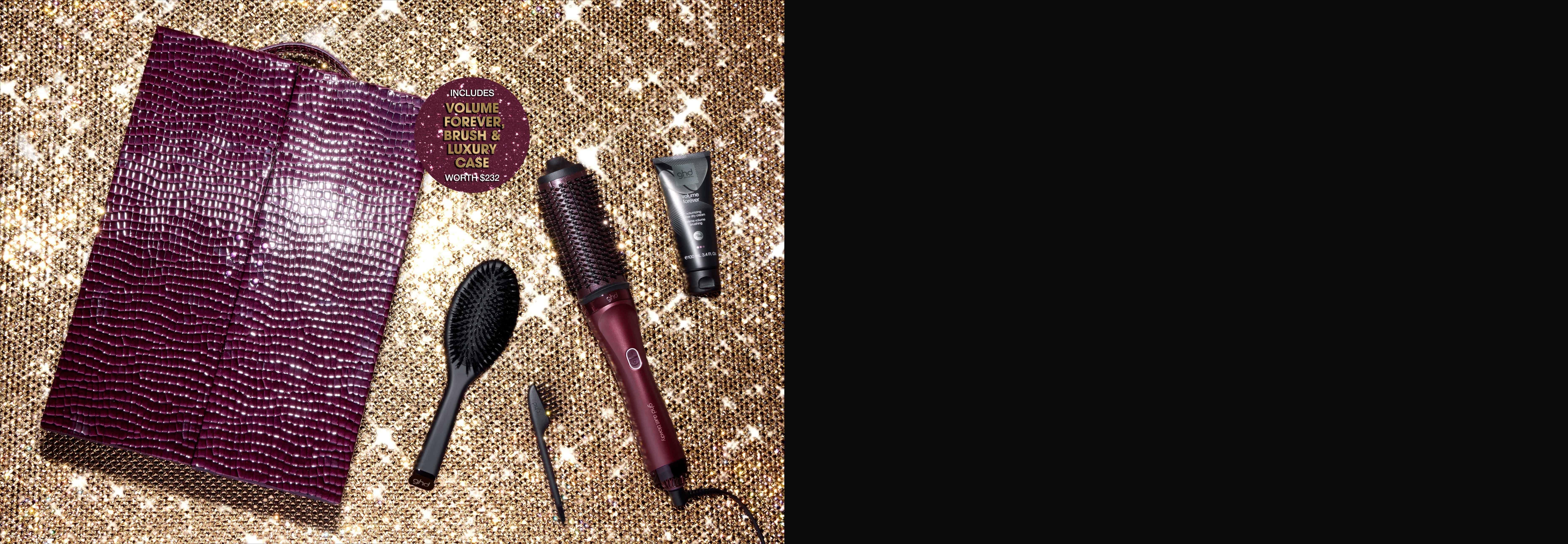 - Includes luxury vanity case² and a heat-resistant mat³, ghd volume forever, ghd oval dressing brush and cleaning brush (worth $232).