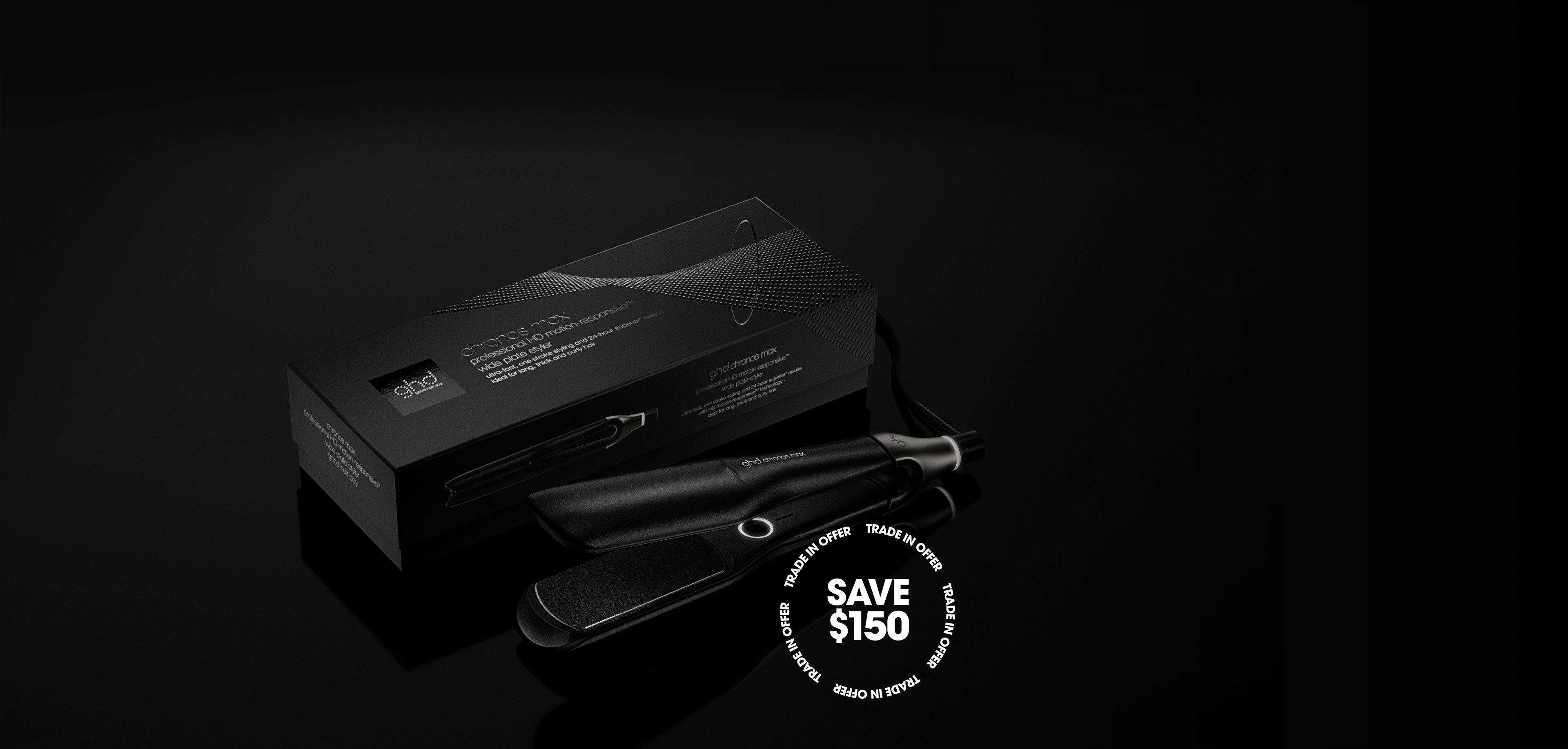 Use code TRADEIN to trade in any brand of hair straightener and get $150 off your new ghd chronos or ghd chronos max.