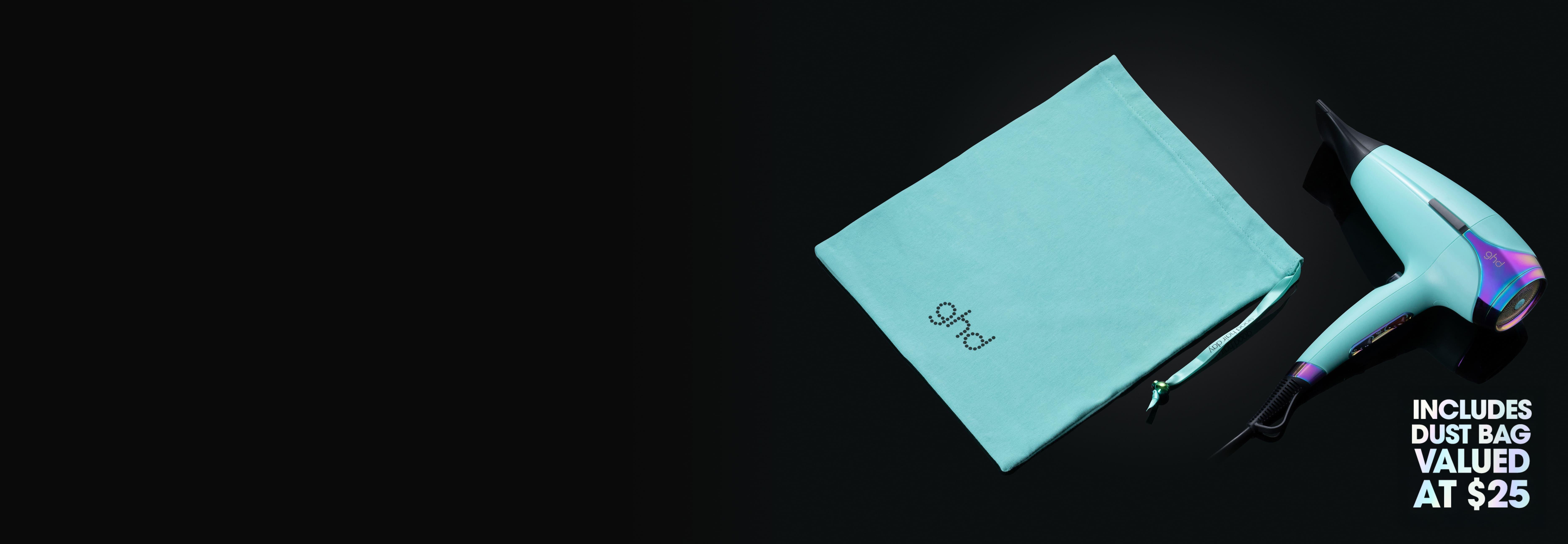 ghd helios® has been wrapped in a cosmic mystic aqua hue with contrasting iridescent accents and is accompanied by a matching dust bag (valued at $25).