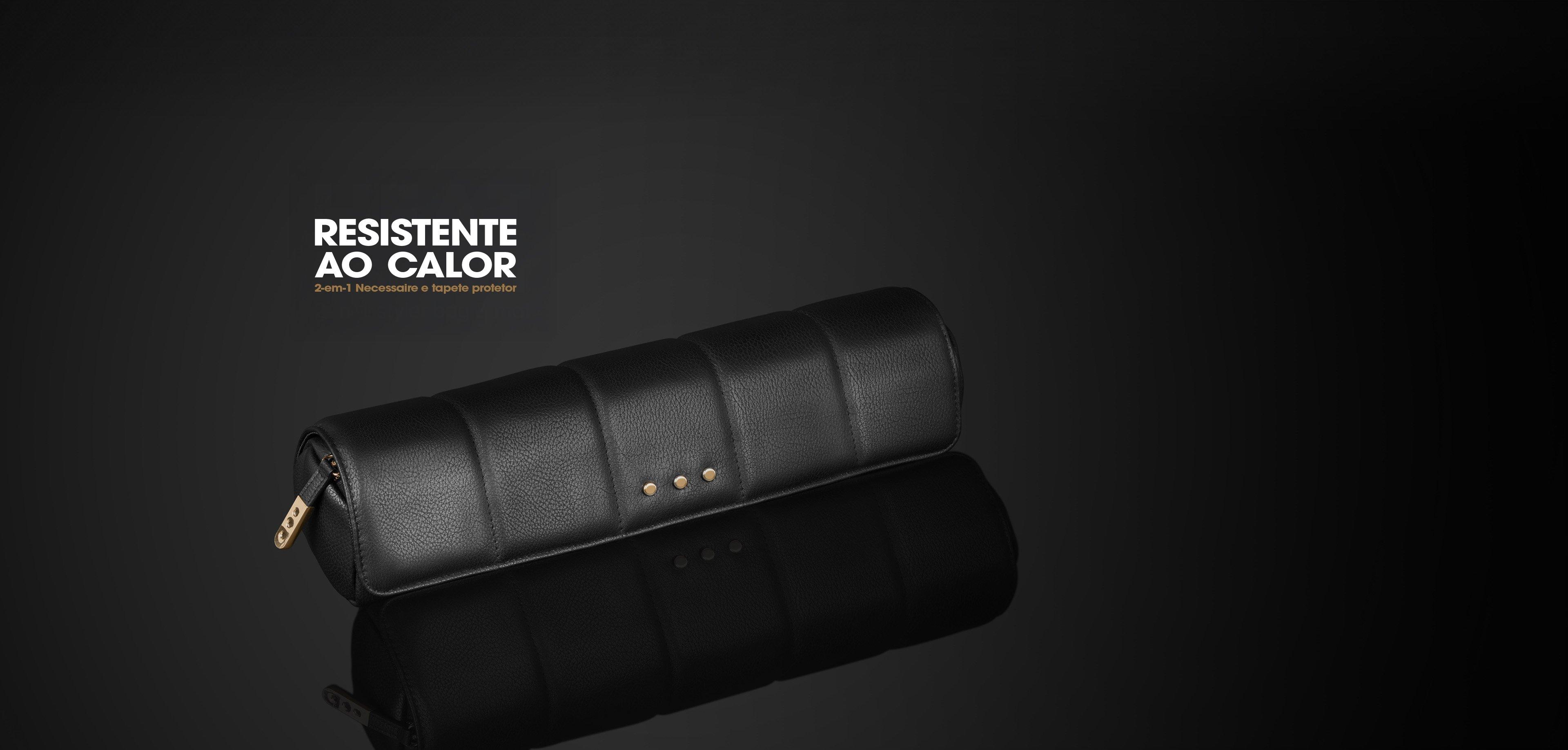 Necessaire com fecho que se desenrola num tapete resistente ao calor, para maior tranquilidade durante o styling.