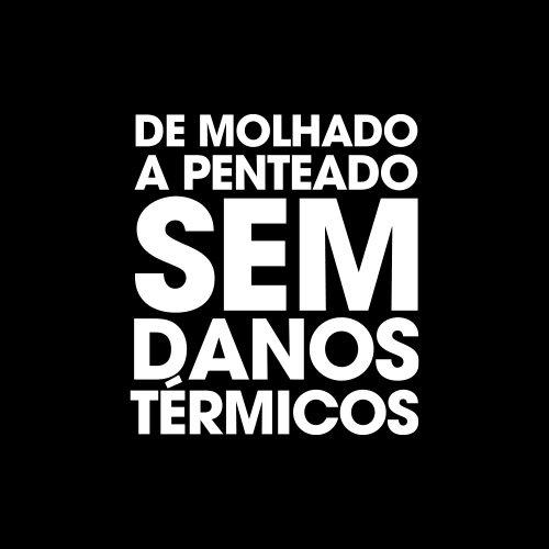 * Sem danos no cabelo causados pelo calor após 4 passagens no modo secagem, quando comparado com um cabelo seco naturalmente ao ar.