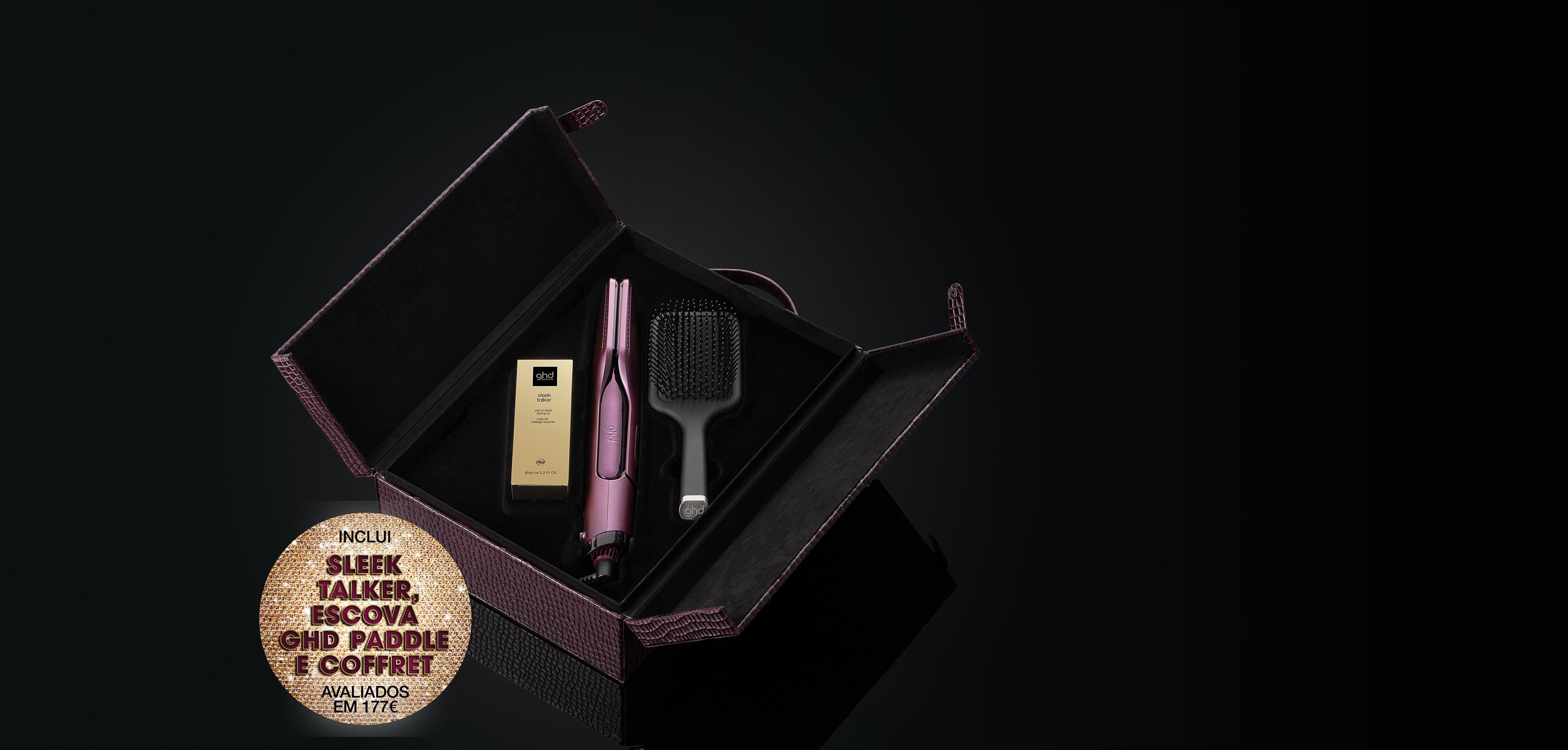 Nesta época festiva, mergulha num mundo de styling de alto glamour com a coleção ghd Cherry Chic. Inspirada pelo encanto do luxo clássico e pela confiança de uma escova perfeita, esta coleção em edição limitada apresenta um tom cherry luxuoso — uma cor que evoca decadência e desejo. Quer seja para oferecer ou para te mimar, eleva cada momento de cuidado capilar com a ghd Duet Style, a styler profissional 2-em-1 com ar quente, o ghd Sleek Talker™, óleo de styling do húmido ao liso, a ghd The All-Rounder Paddle Brush e um estojo inspirado em viagens¹, que transforma a tua rotina num verdadeiro ritual.