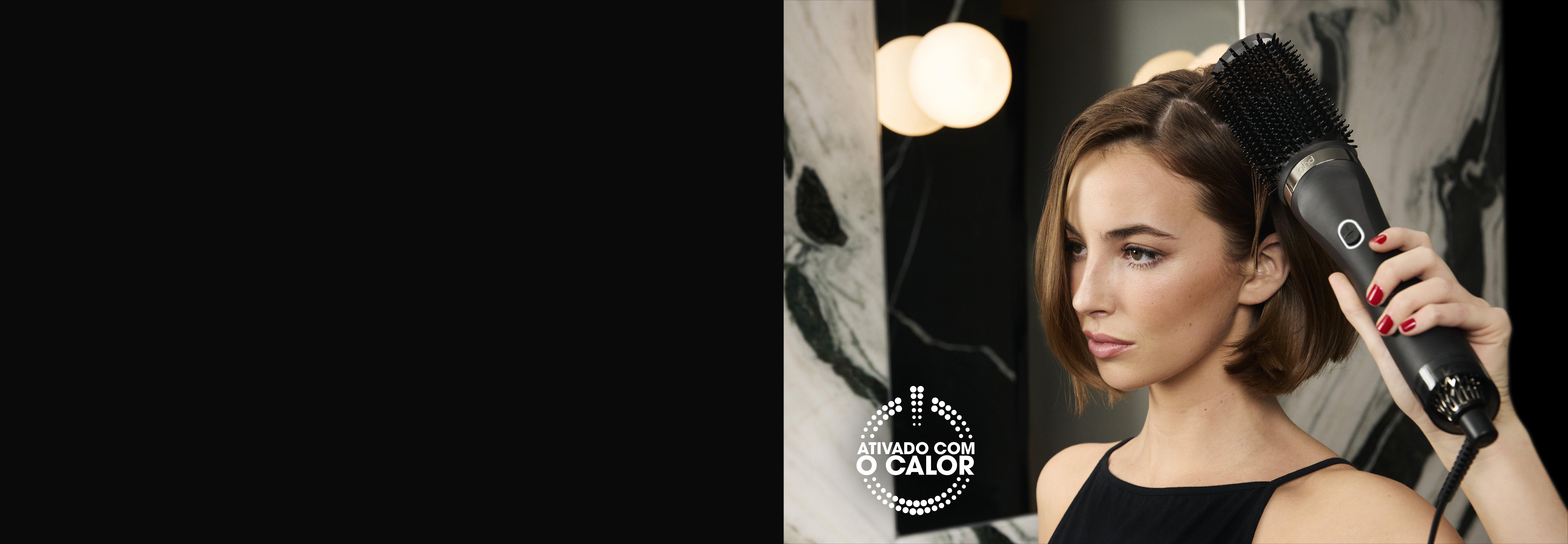 ²Teste com consumidoras, setembro de 2023: 77% das 97 mulheres concordaram que o ghd Rehab deixa o cabelo instantaneamente mais espesso ao toque e 80% disseram que proporciona um aspeto mais cheio, comparado ao cabelo antes do uso do produto com styling térmico.