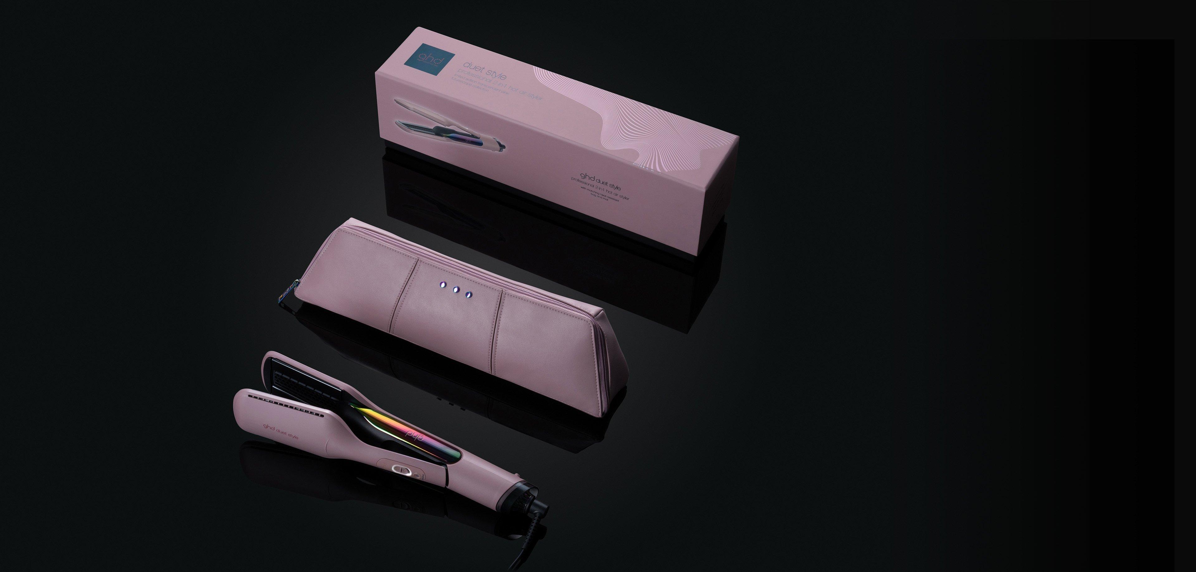 Revolutionera din hårrutin med ghd Duet Style™ professional 2-in-1 hot air styler, en del av den limiterade Futurescape-kollektionen. Designad i en fängslande transcendent rosa finish med bländande iriserande accenter⁴, blandar detta banbrytande verktyg banbrytande teknik med elegant design. Komplett med en matchande värmetålig väska och matta³, är det den ultimata följeslagaren för enkel styling.