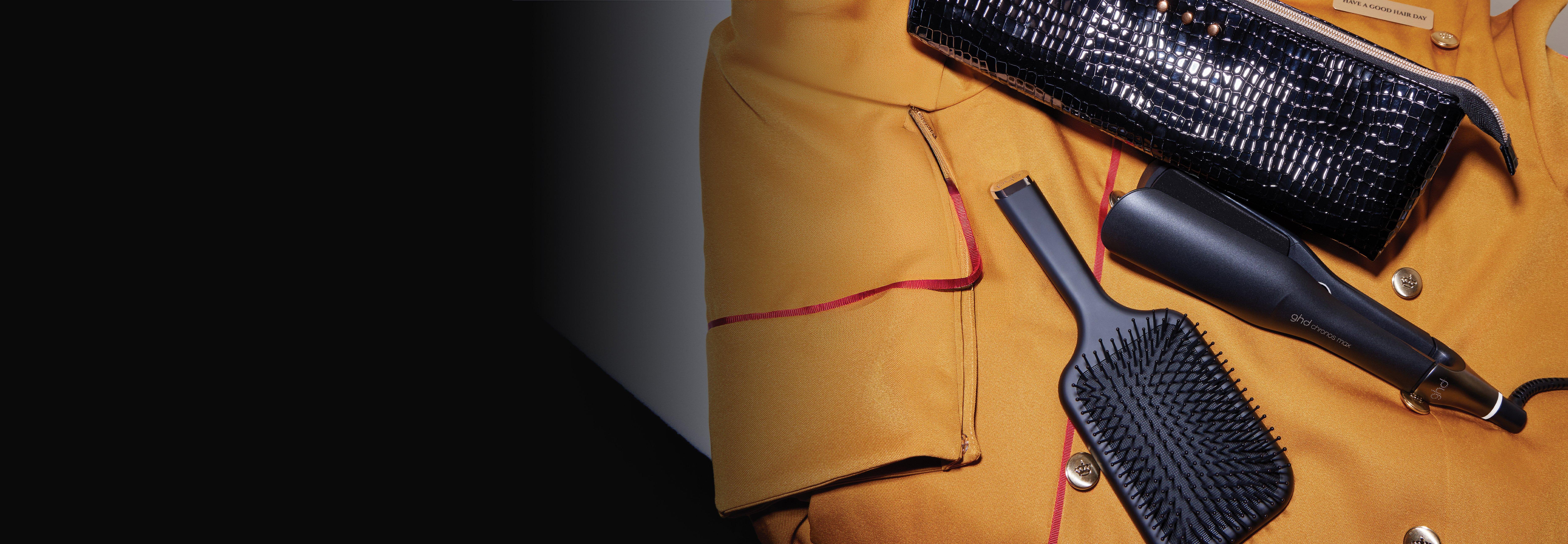 Our professional wide plate flat iron, the ghd Chronos Max™, is gifted with a luxury heat-resistant bag¹ and a ghd all-rounder paddle brush for flawless festive styling.