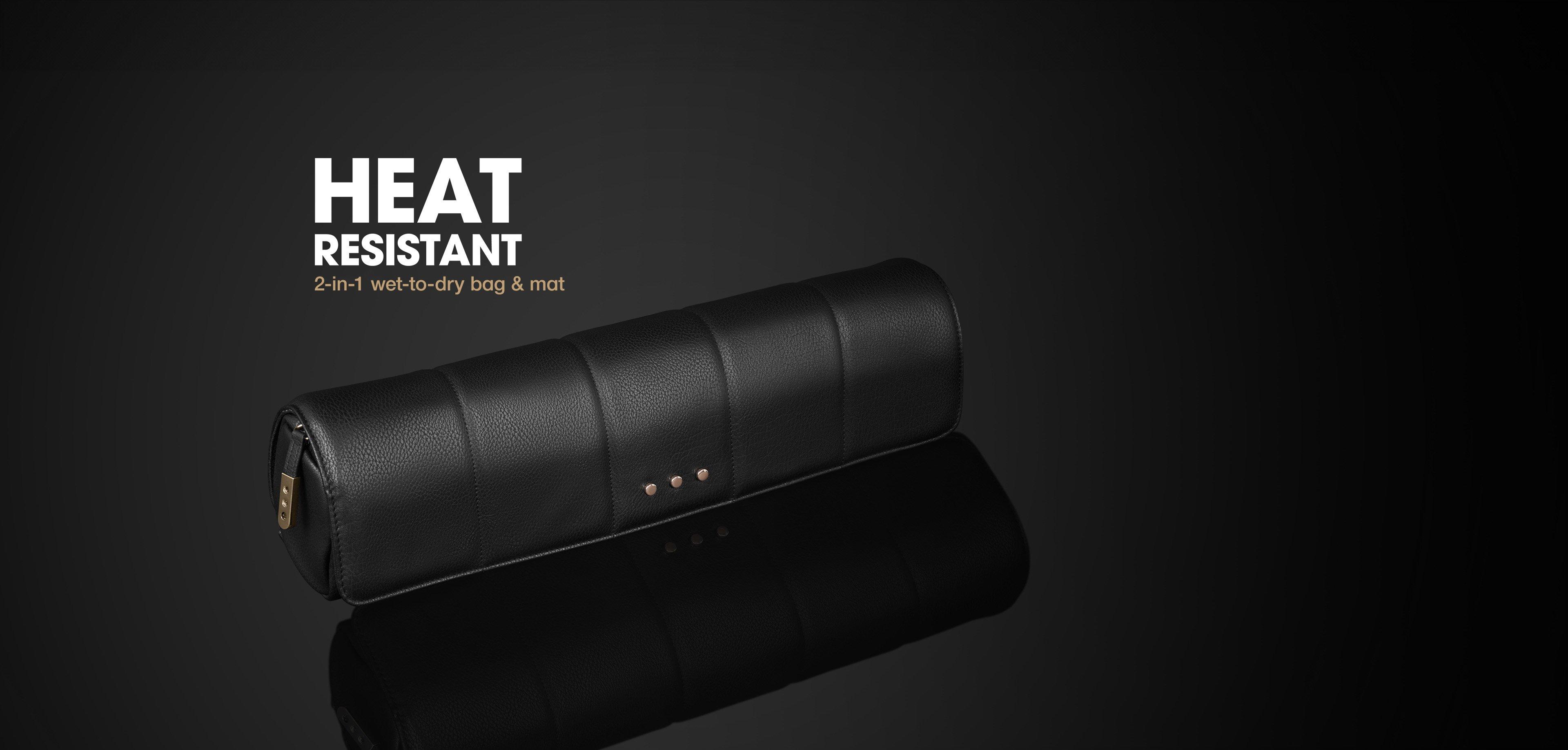 Zippered bag rolls out into a heat-resistant mat for peace of mind while styling.