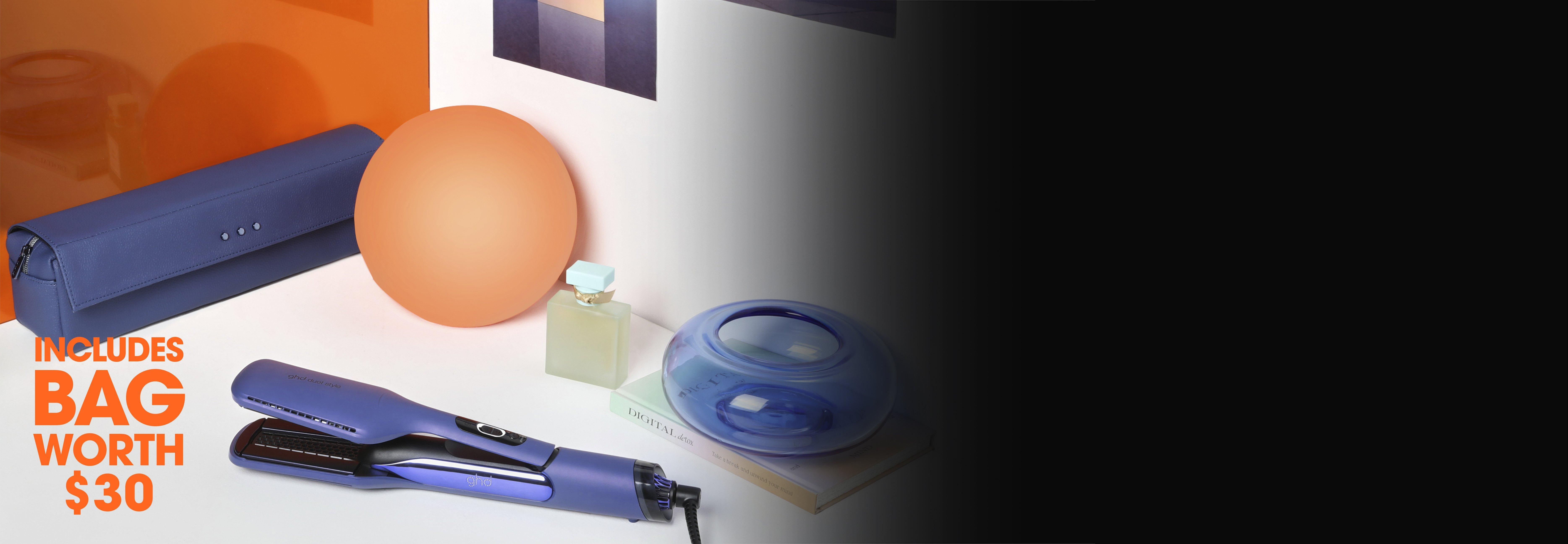 Bring the confidence to channel good hair days that look good on screen and IRL with the ghd duet style in elemental blue and it's matching heat-resistant bag².