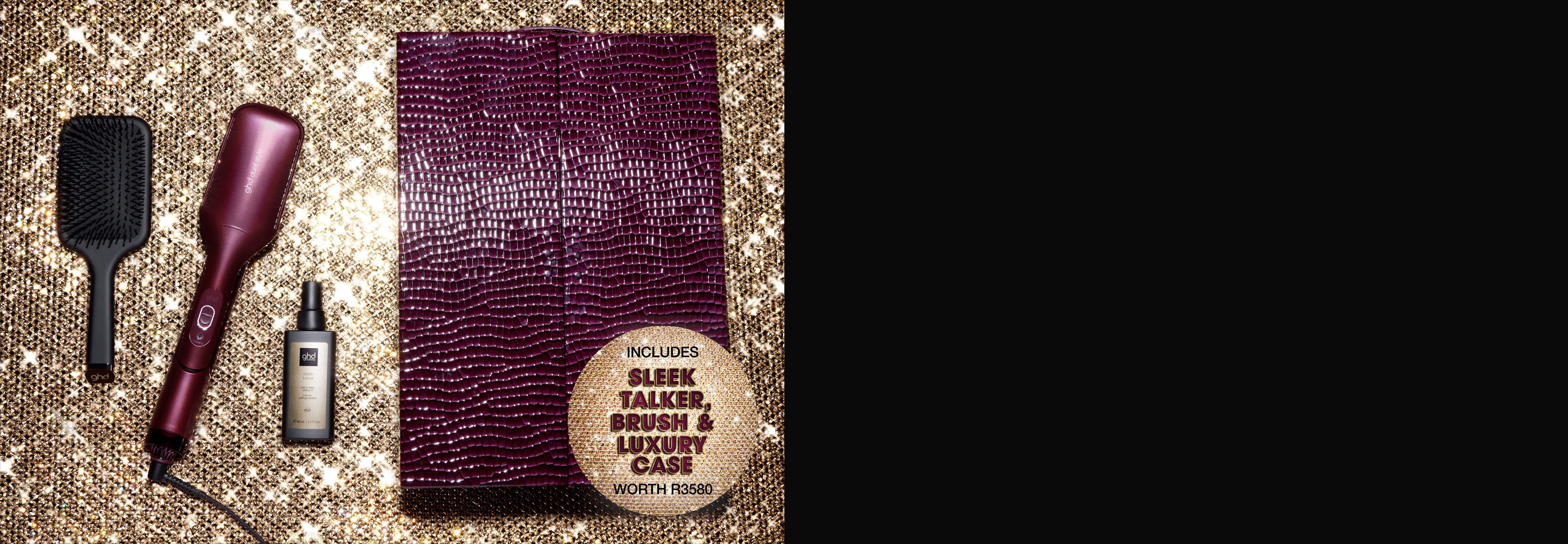 - Includes luxury vanity case³, ghd sleek talker and ghd paddle brush (worth R3580)
