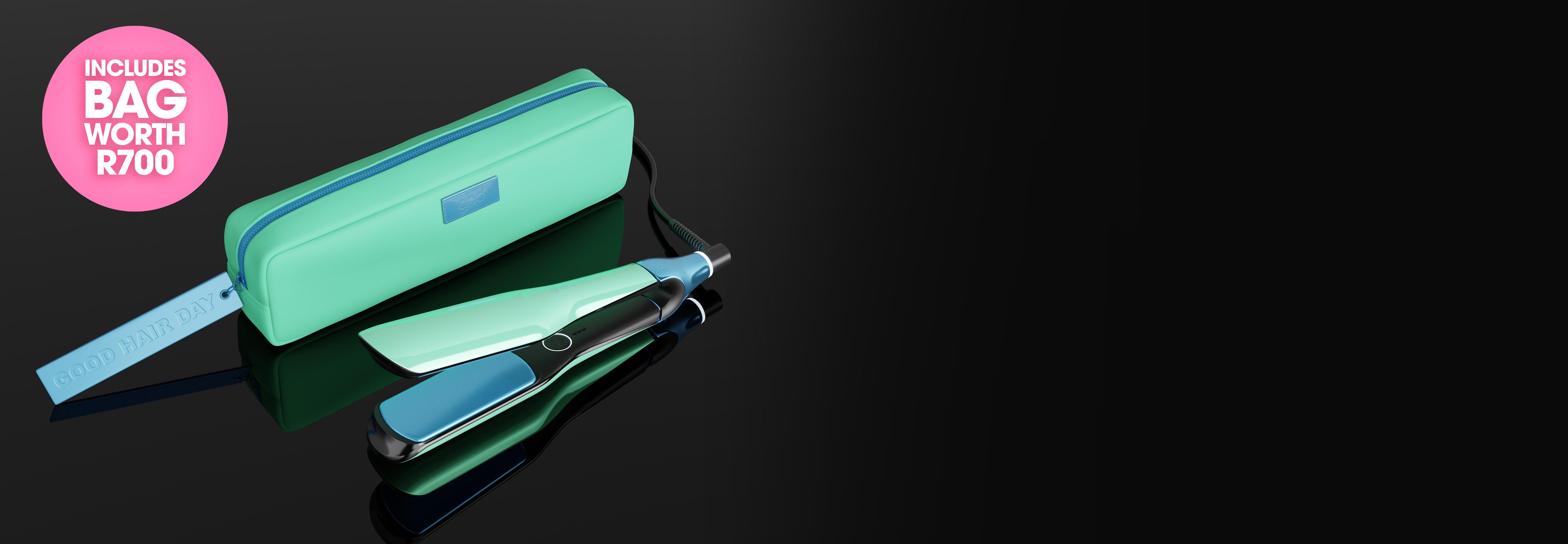 ghd Chronos Max has been dipped in jelly mint and glazed blue, accompanied by a luxury heat-resistant matching bag worth R700.