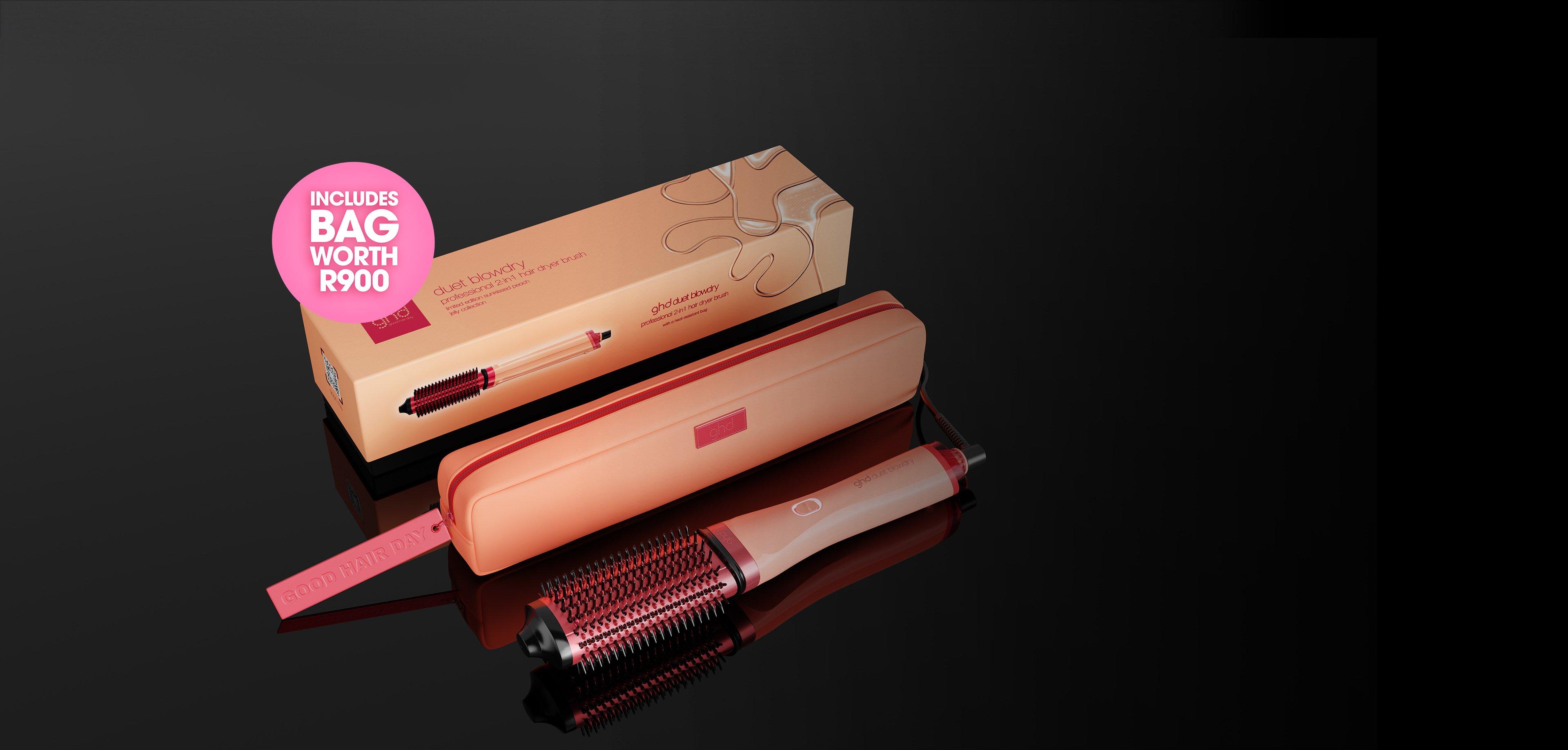 ghd Duet Blowdry has been dipped in sun-kissed peach and sugar pink, accompanied by a luxury heat-resistant matching bag worth R900.